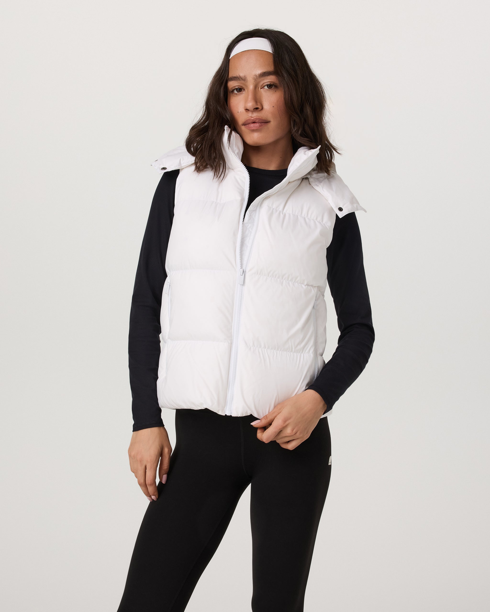 The Alta Down Vest delivers quintessential winter warmth in a sleeveless vest. This women's vest is filled with 650 fill power duck-down from responsibly sourced down, providing layerable warmth for those cold winter days. It has a performance woven shell and lining crafted from 100% recycled materials, zippered fleece-lined hand pocket, and a removable hood.