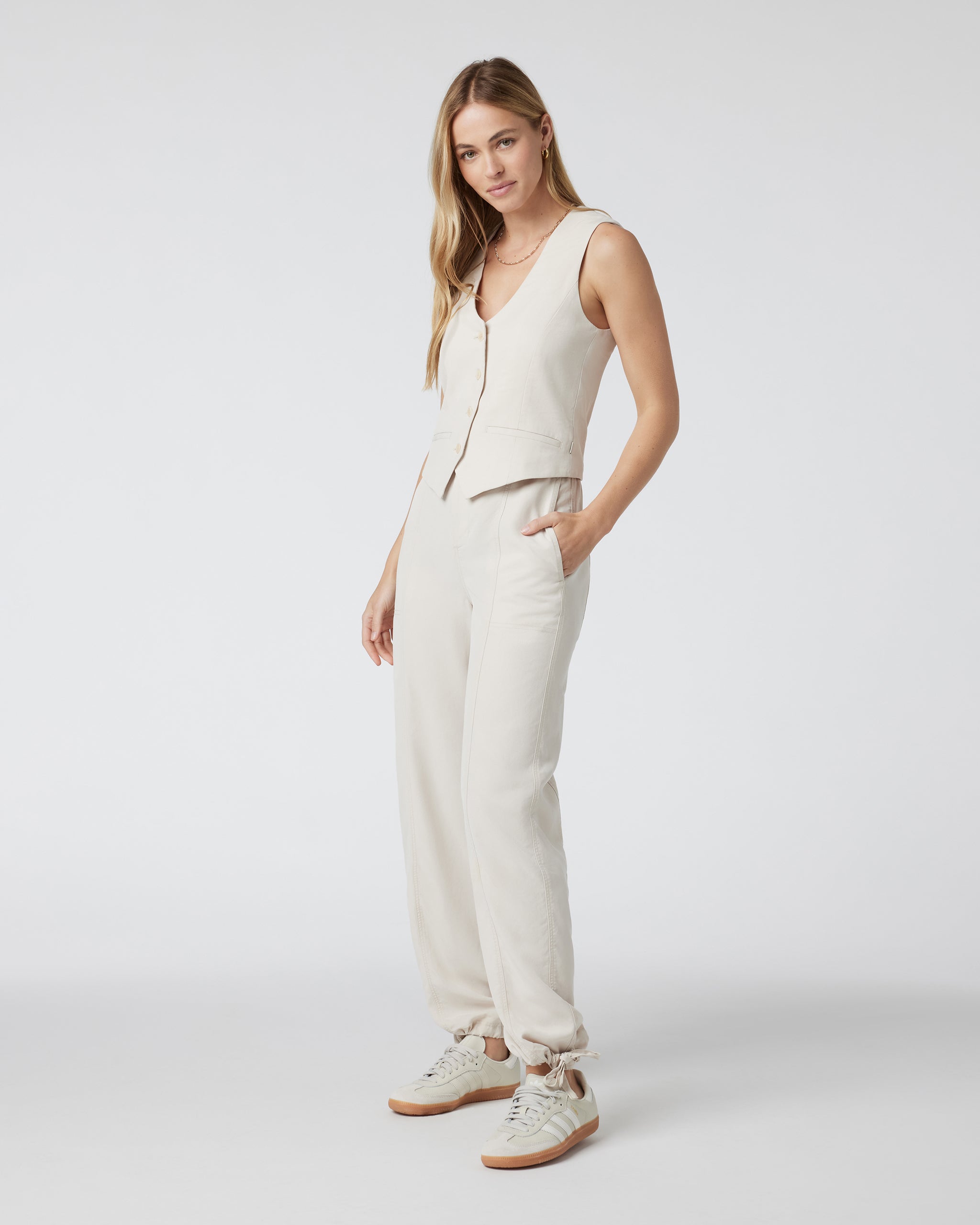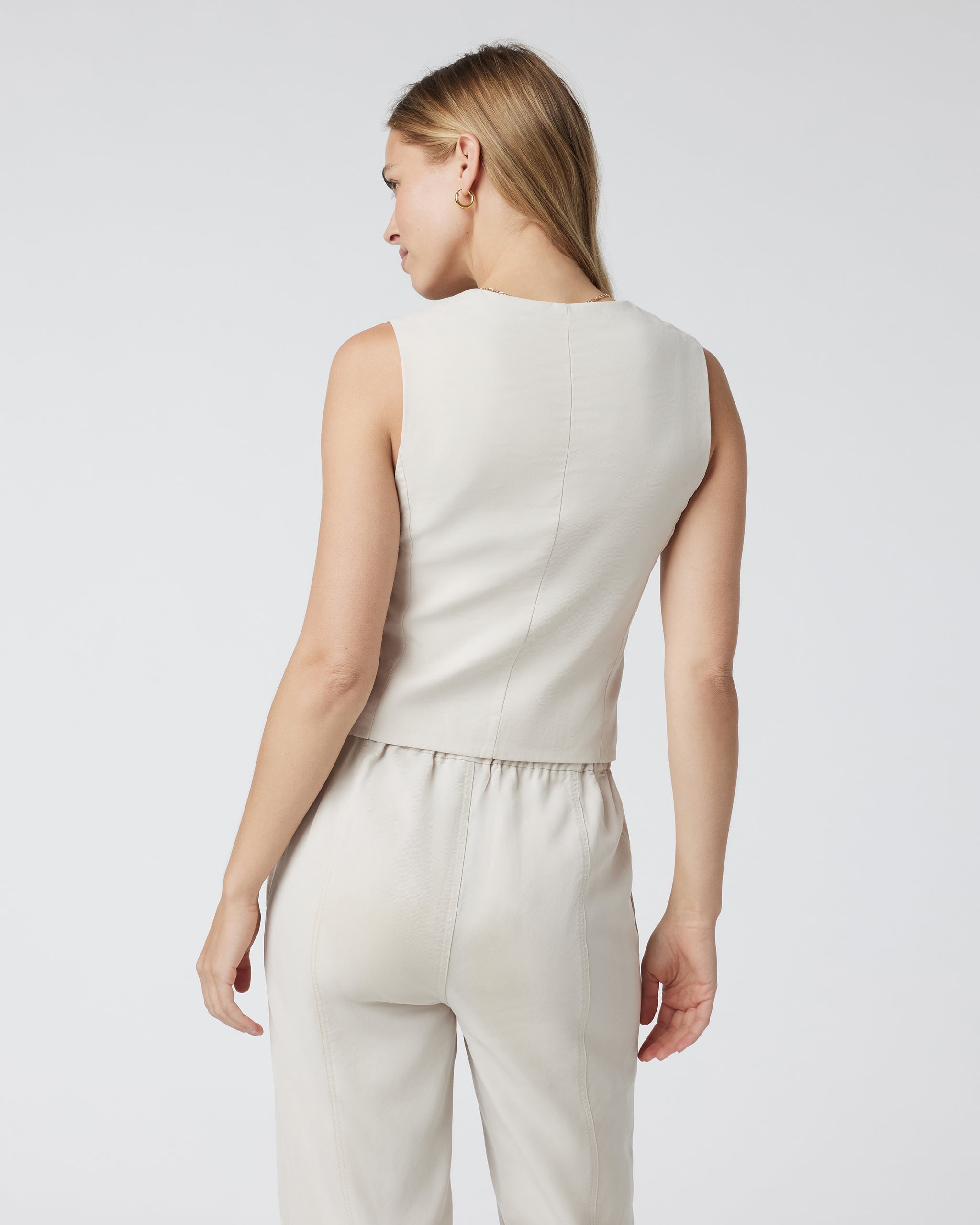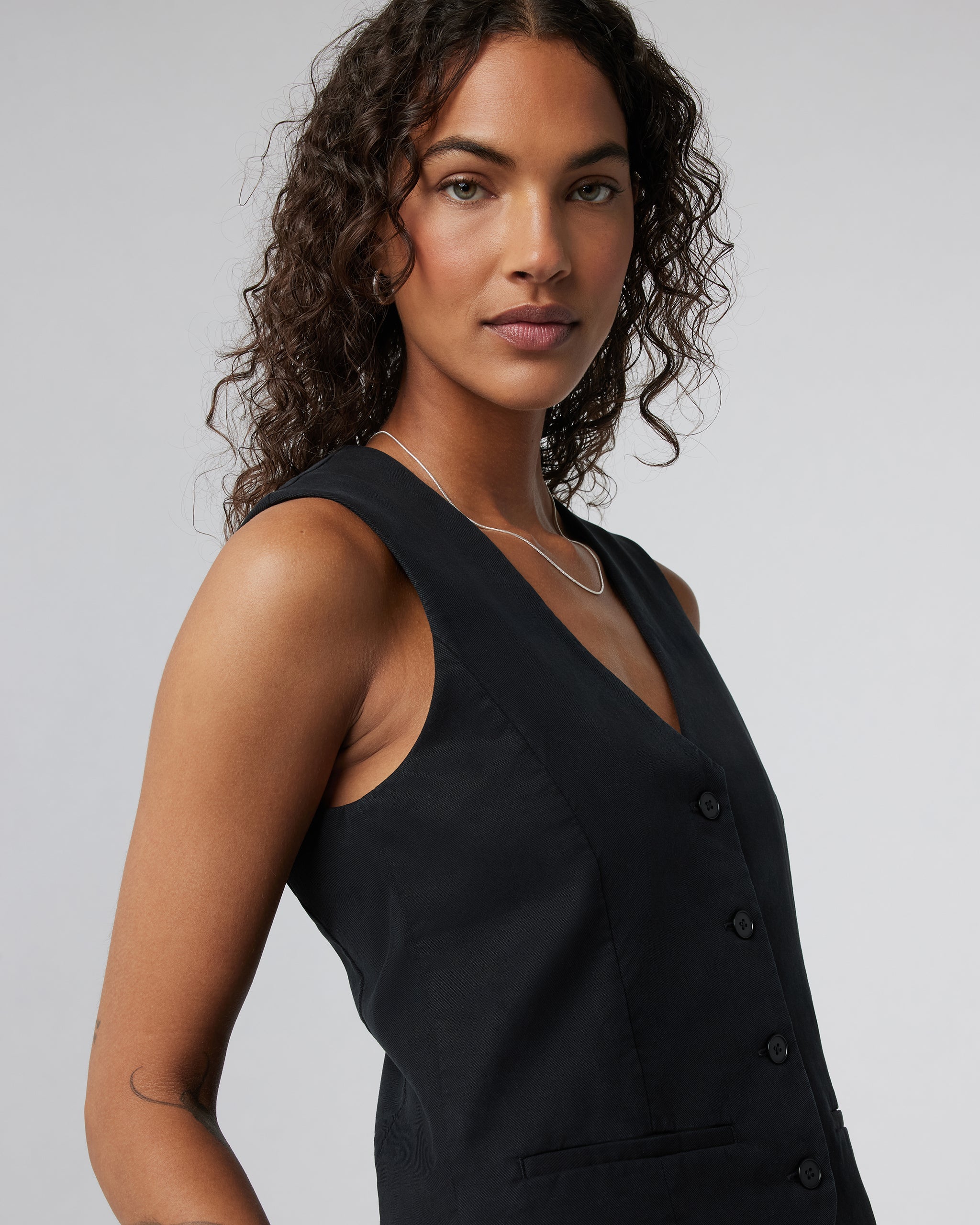 Love to live in our Coastline fabric, a drapey twill with a soft hand feel. It takes versatile shape as the Coastline Vest, a sleeveless button-up vest with a slim fit. Pair with our Coastline Pant or any of your favorite bottoms.