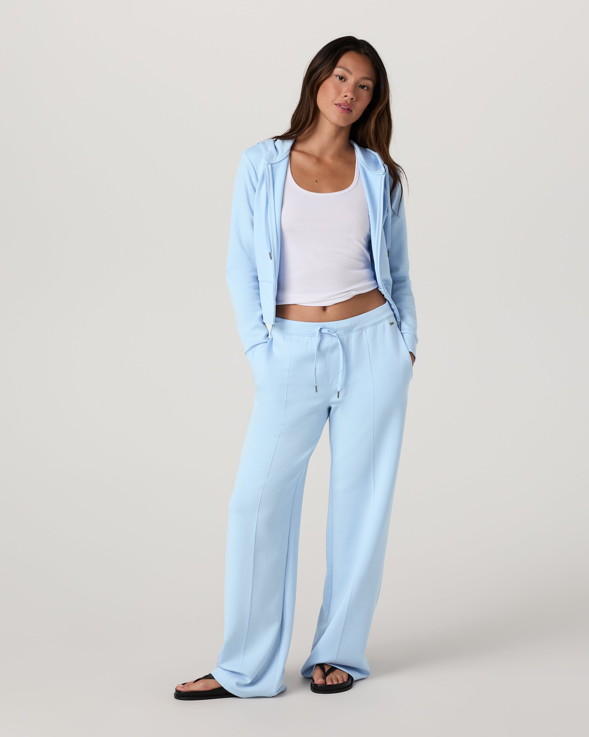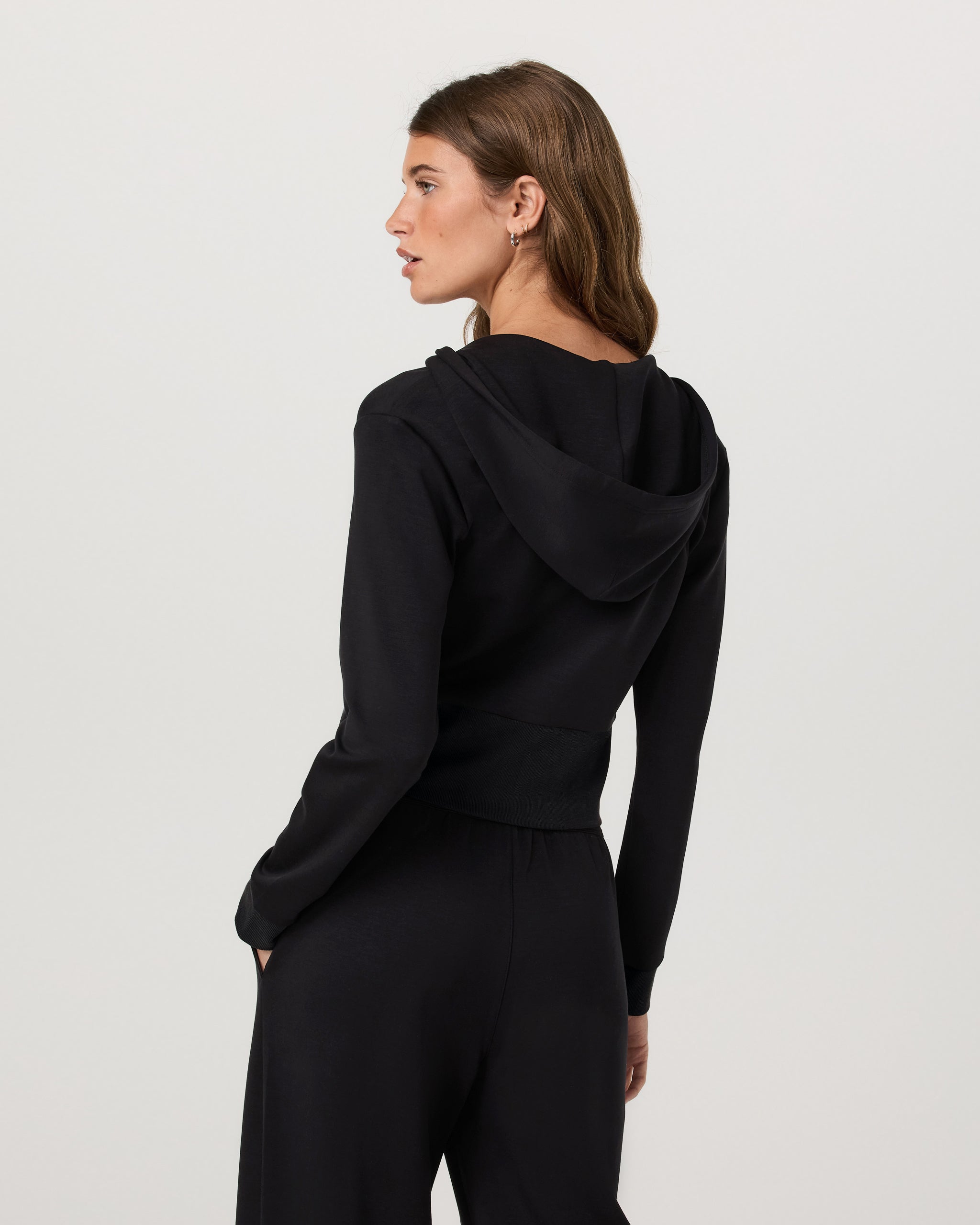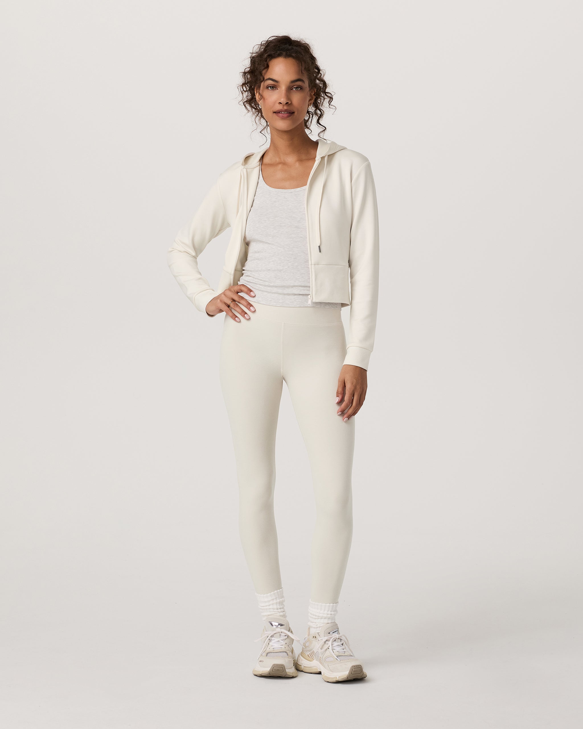 The Compose Full Zip Hoodie is a modern take on a zip-up with a wide ribbed waistband and matching cuffs. It’s crafted with a soft, lightly textured sandwash knit. We love wearing this women's jacket with the Compose Wideleg Pant on rest days. Designed to mimic your favorite vintage hoodie, the fabric color naturally softens over time for a lived-in, well worn look.