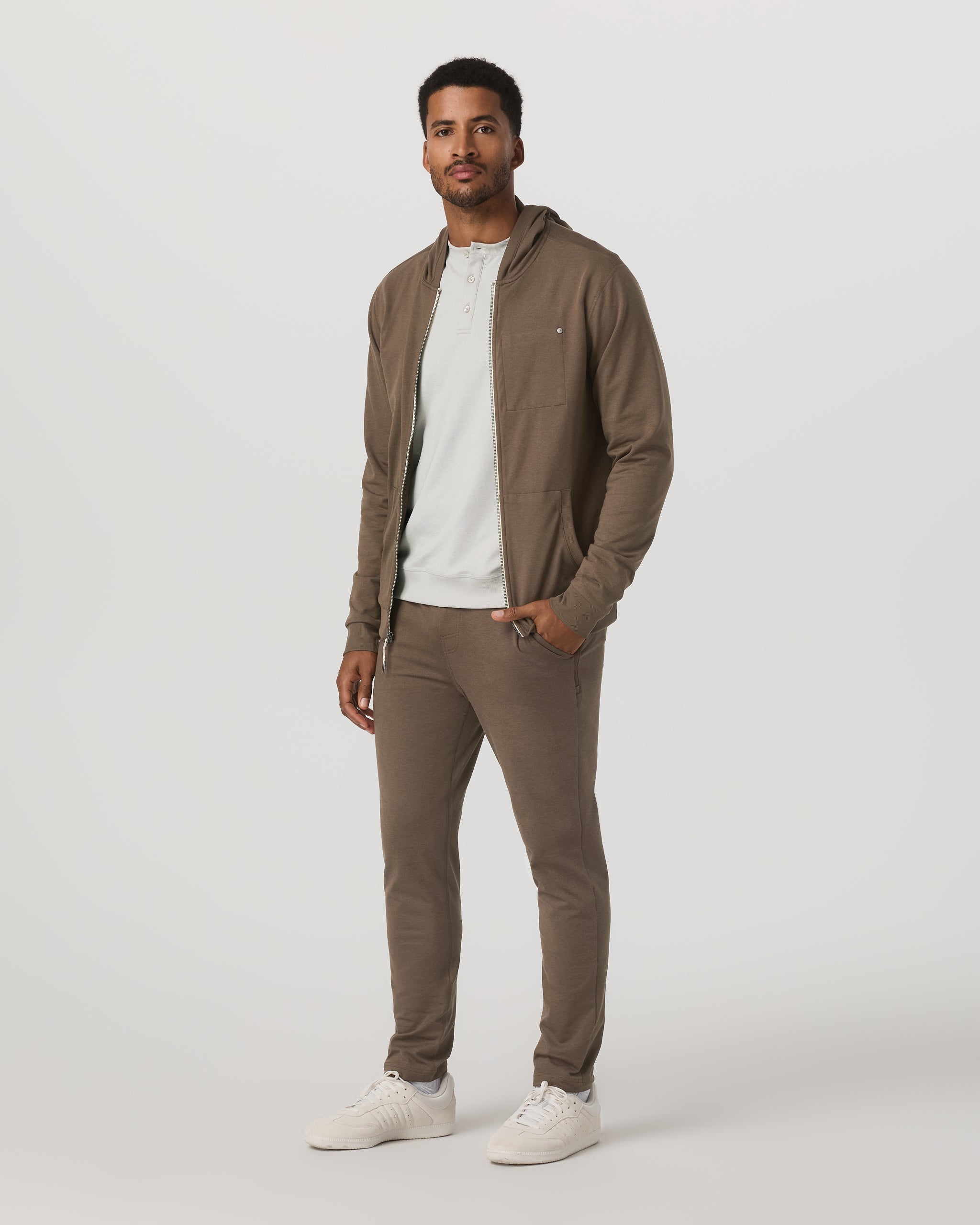 Introducing the Coronado Pant, featuring a super soft performance knit, with a brushed interior for warmth, plus comfortable zip pockets, and a ribbed elastic waistband with an interior drawcord. Great for travel, post-fitness, lounging, and more.