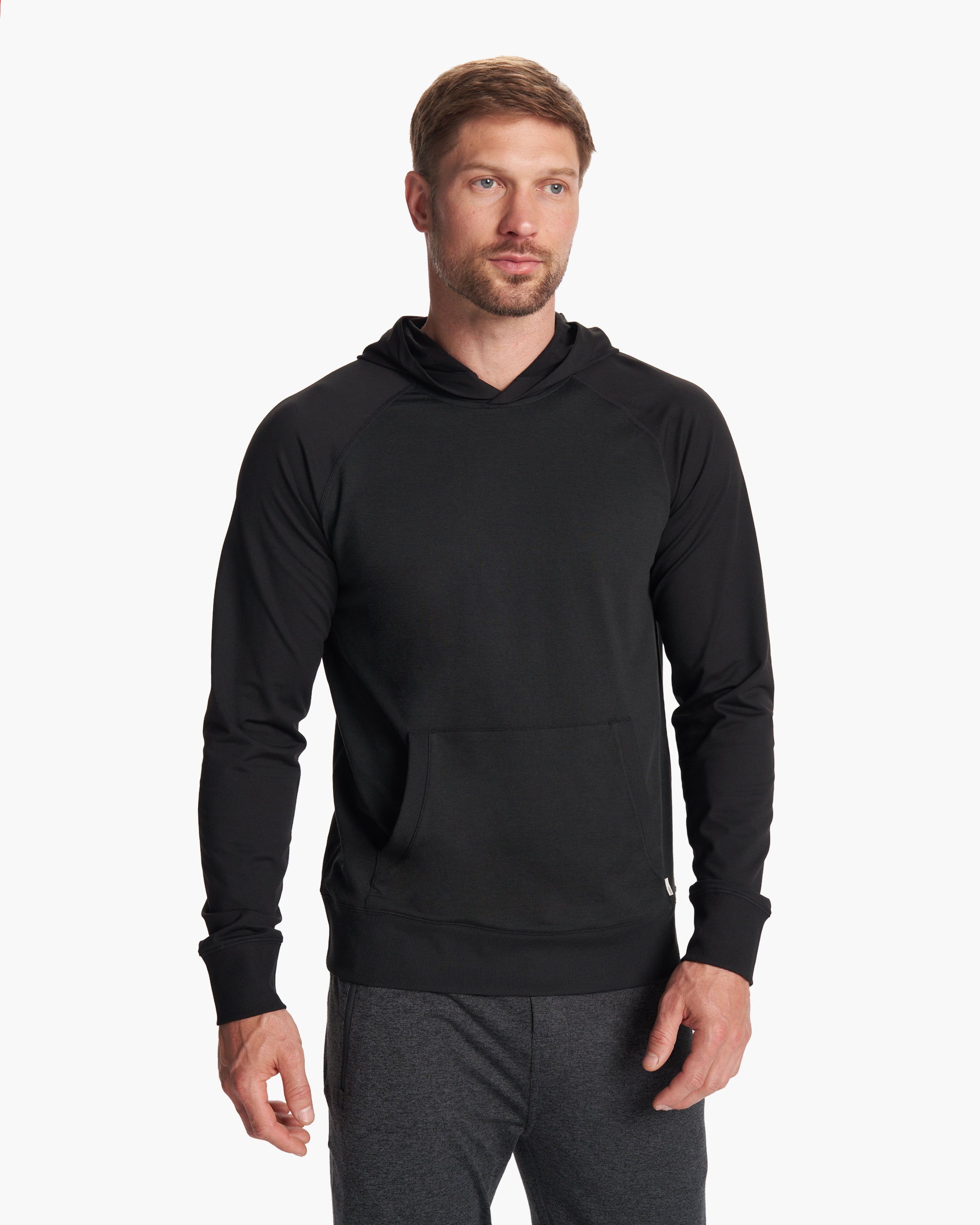 A new pullover hoodie built for hill sprints and lounge stints. Raglan sleeves and 4-way stretch add mobility to this moisture-wicking hoodie with a brushed interior. Made from mostly recycled materials.