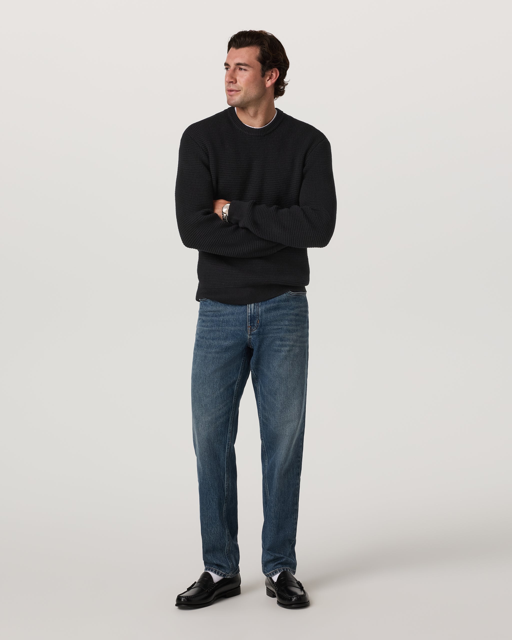 From wintry walks to holiday gatherings, the Denver Waffle Crew Sweater keeps you warm in a heavyweight wool blend made with 55% Merino wool. This premium men’s sweater features an ultra-soft waffle knit and a classic fit for versatile, elevated layering.