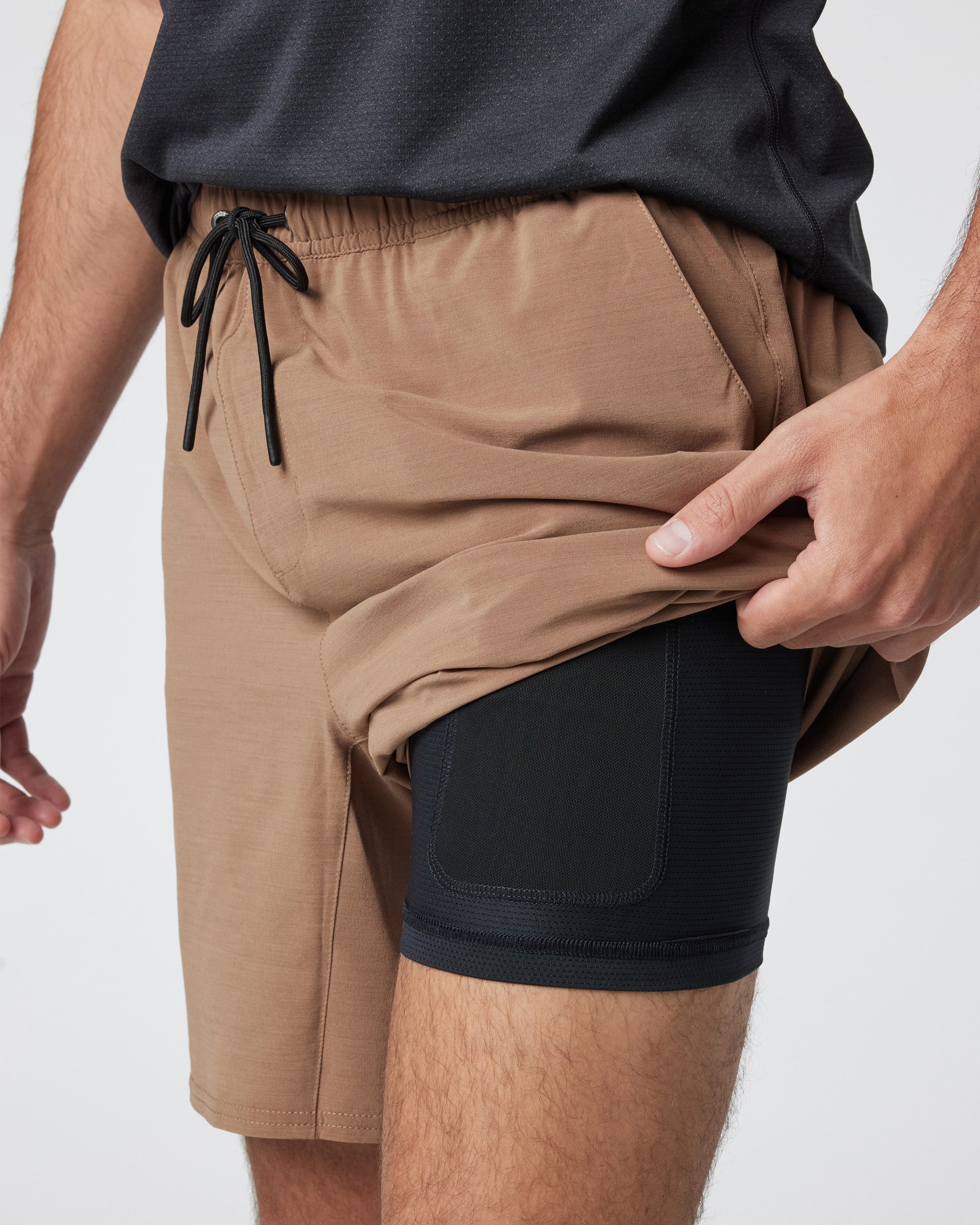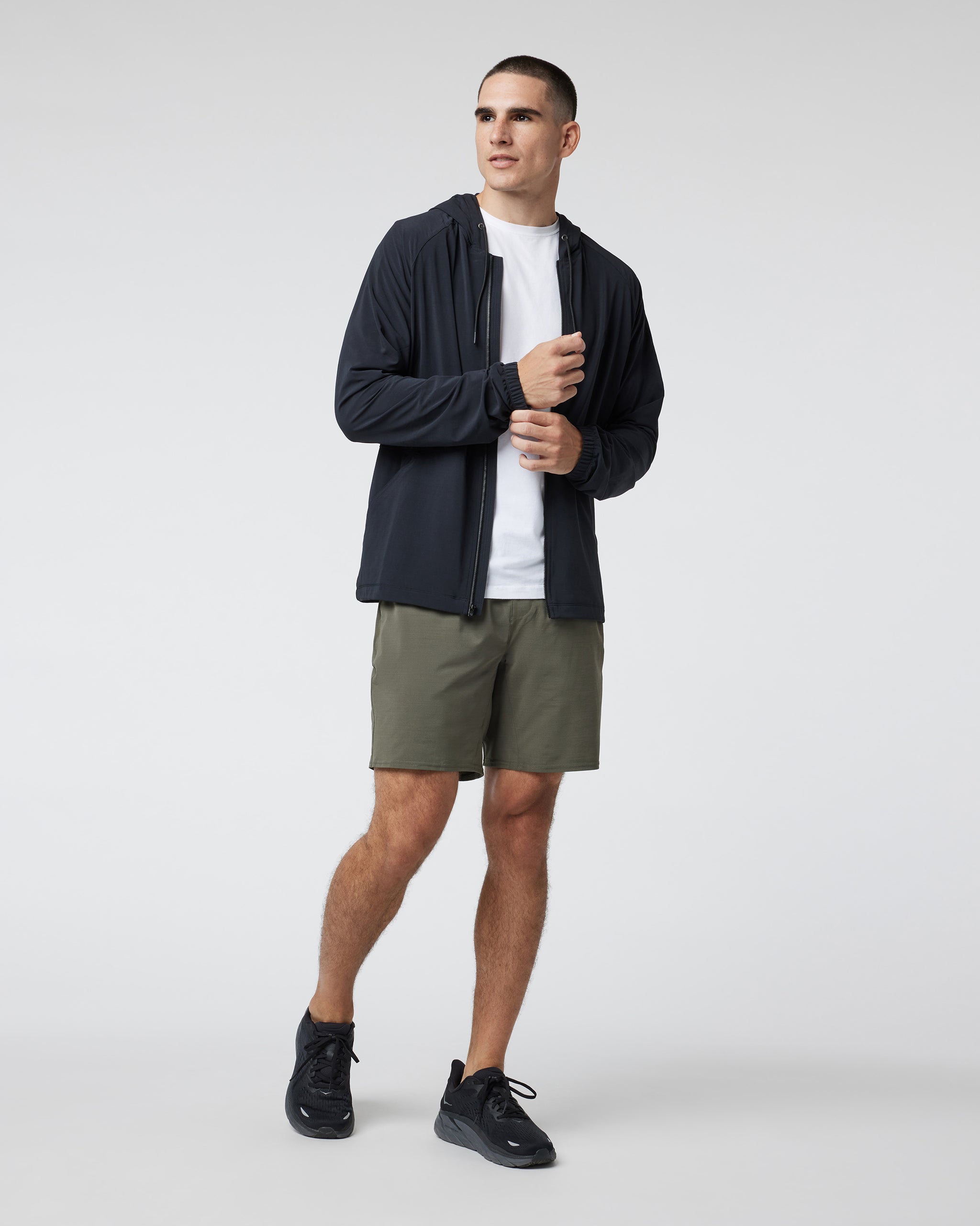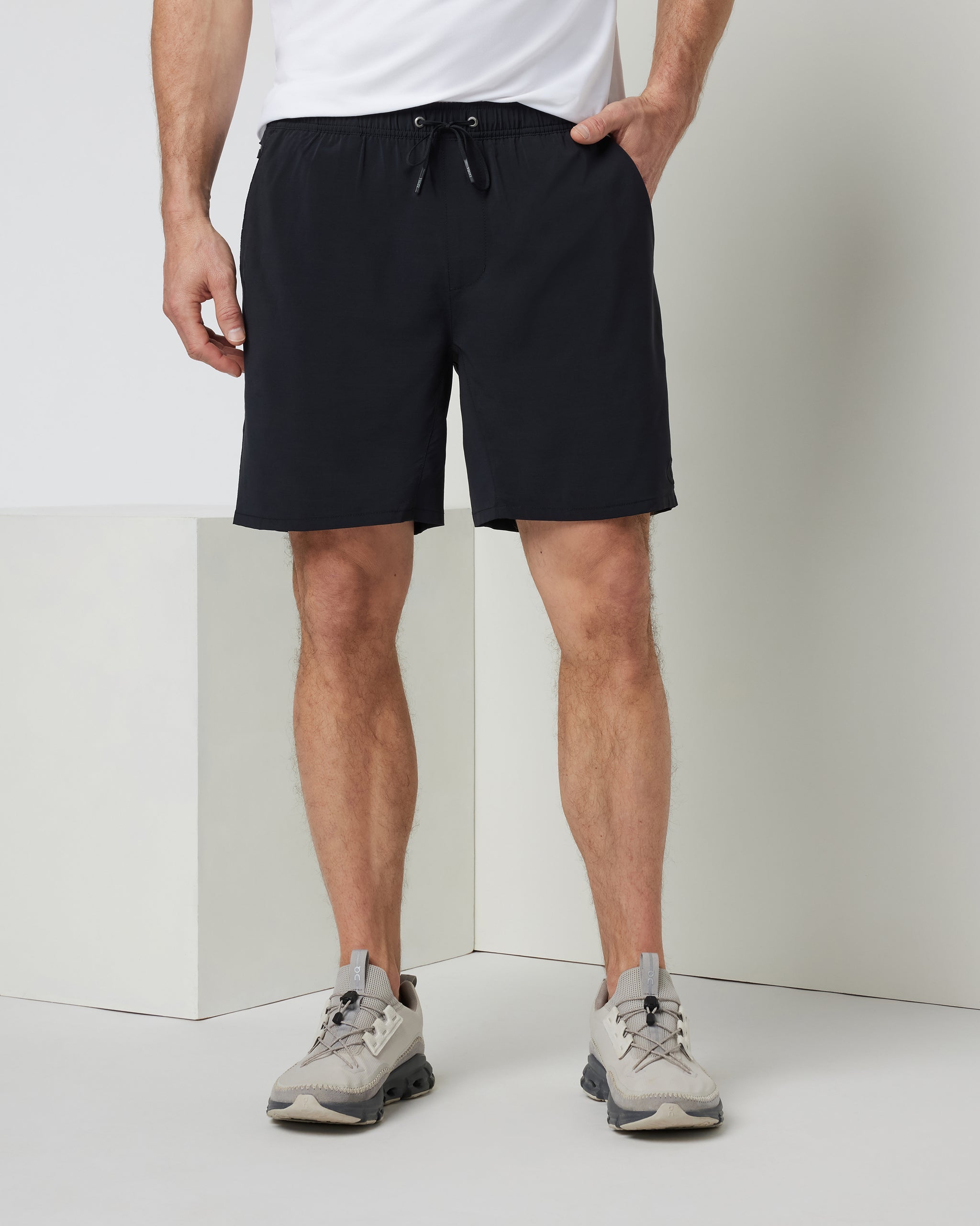 Unlock more momentum with this upgraded version of our classic Kore Short—featuring new zip pockets that keep your essentials safe and secure, plus a new performance fabric with black trims. Go commando in confidence with the breathable, boxer-brief liner inside our men's athletic short with zipper pockets.