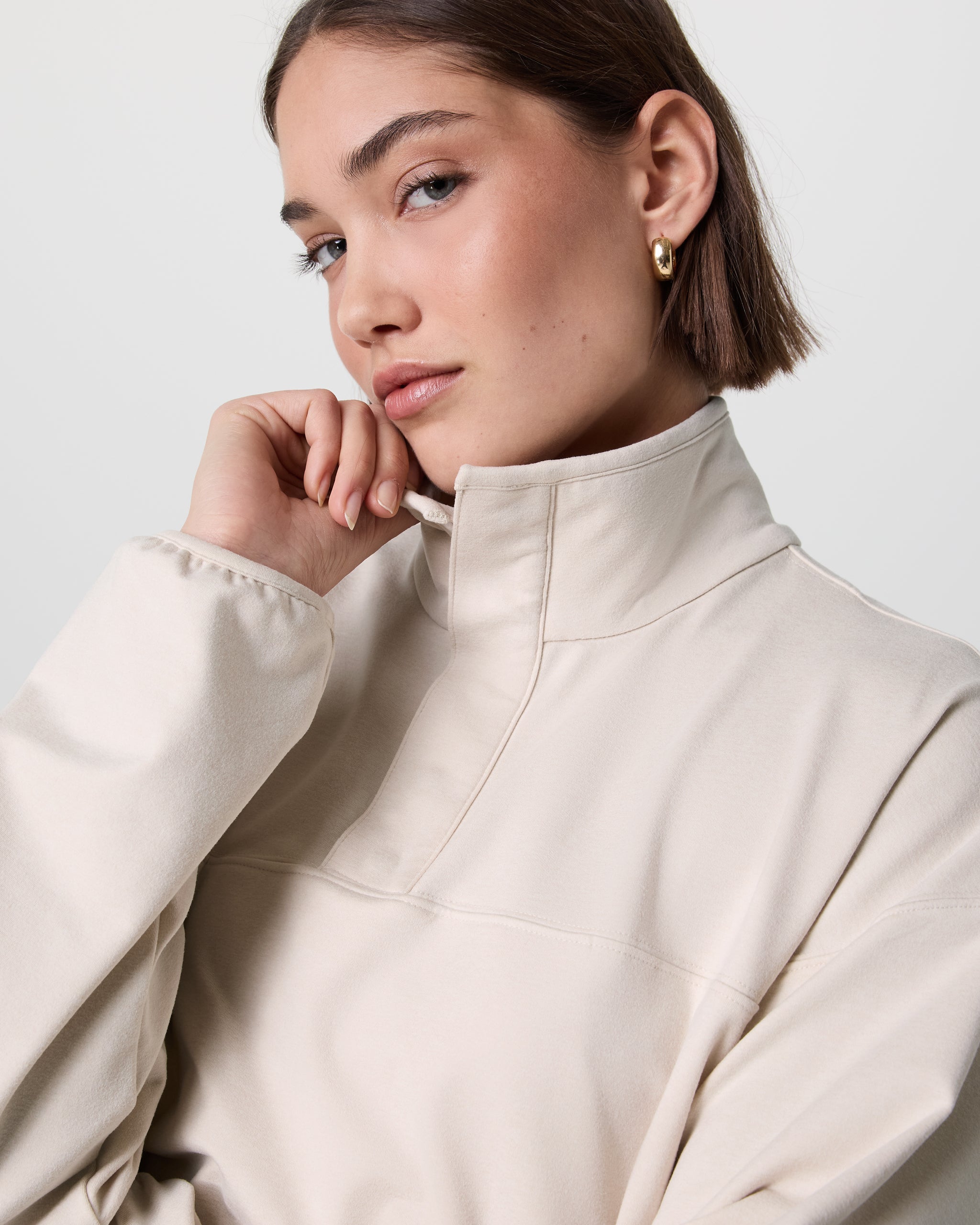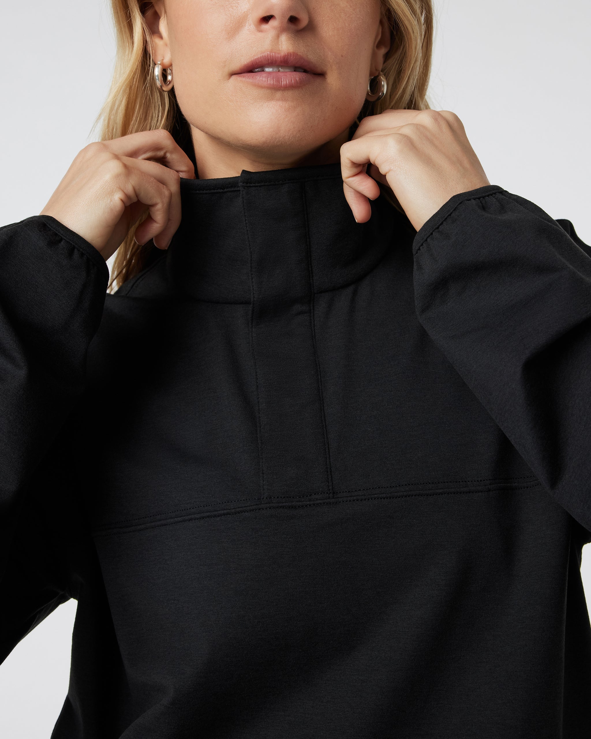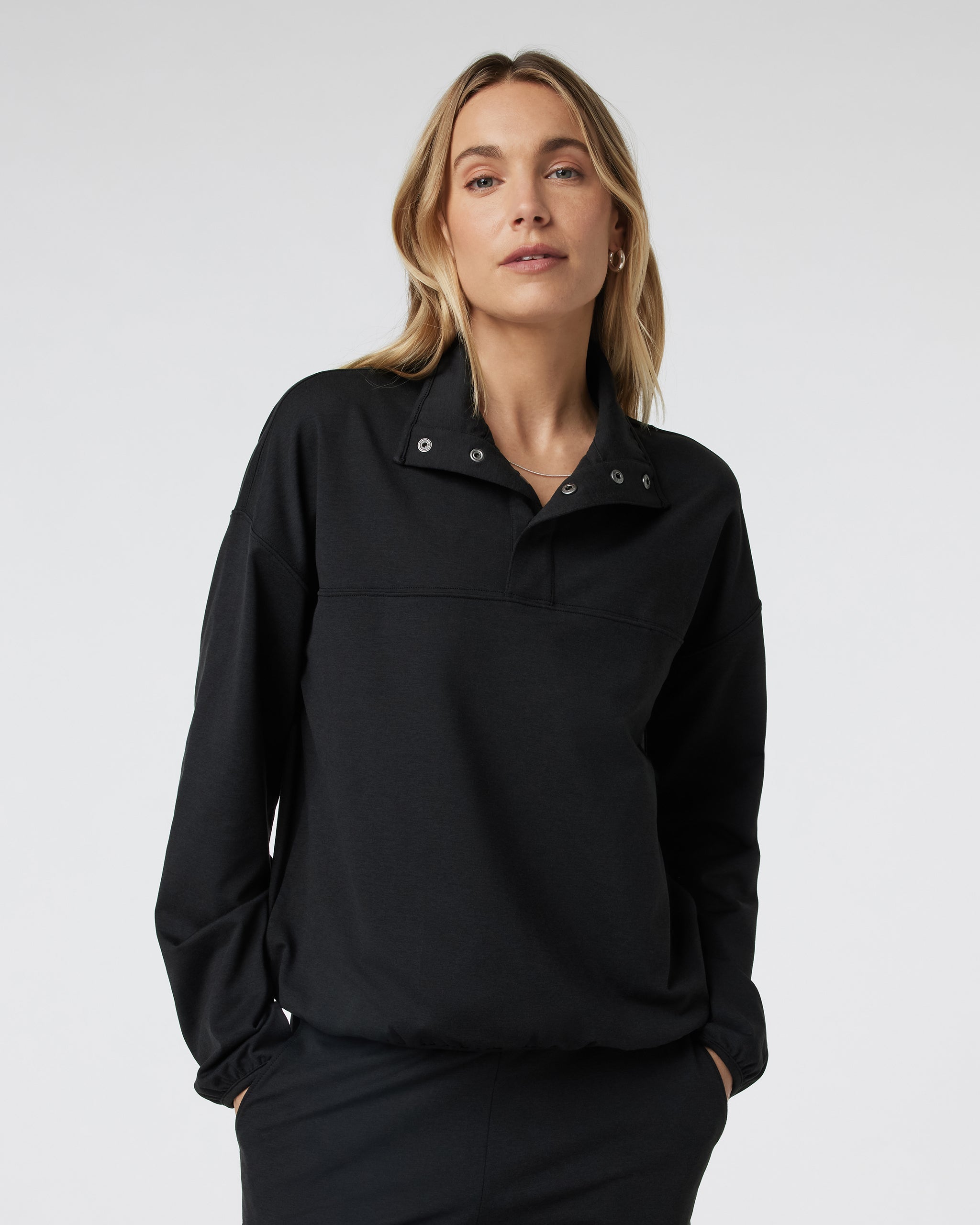 The Granite Snap Mock is a new pullover you’ll find yourself wearing everywhere. It’s built with our brushed-back Granite fabric that’s equally soft, stretchy and toasty warm, making it perfect for cooler days. Finished with a classic kangaroo pocket and hidden snap collar.