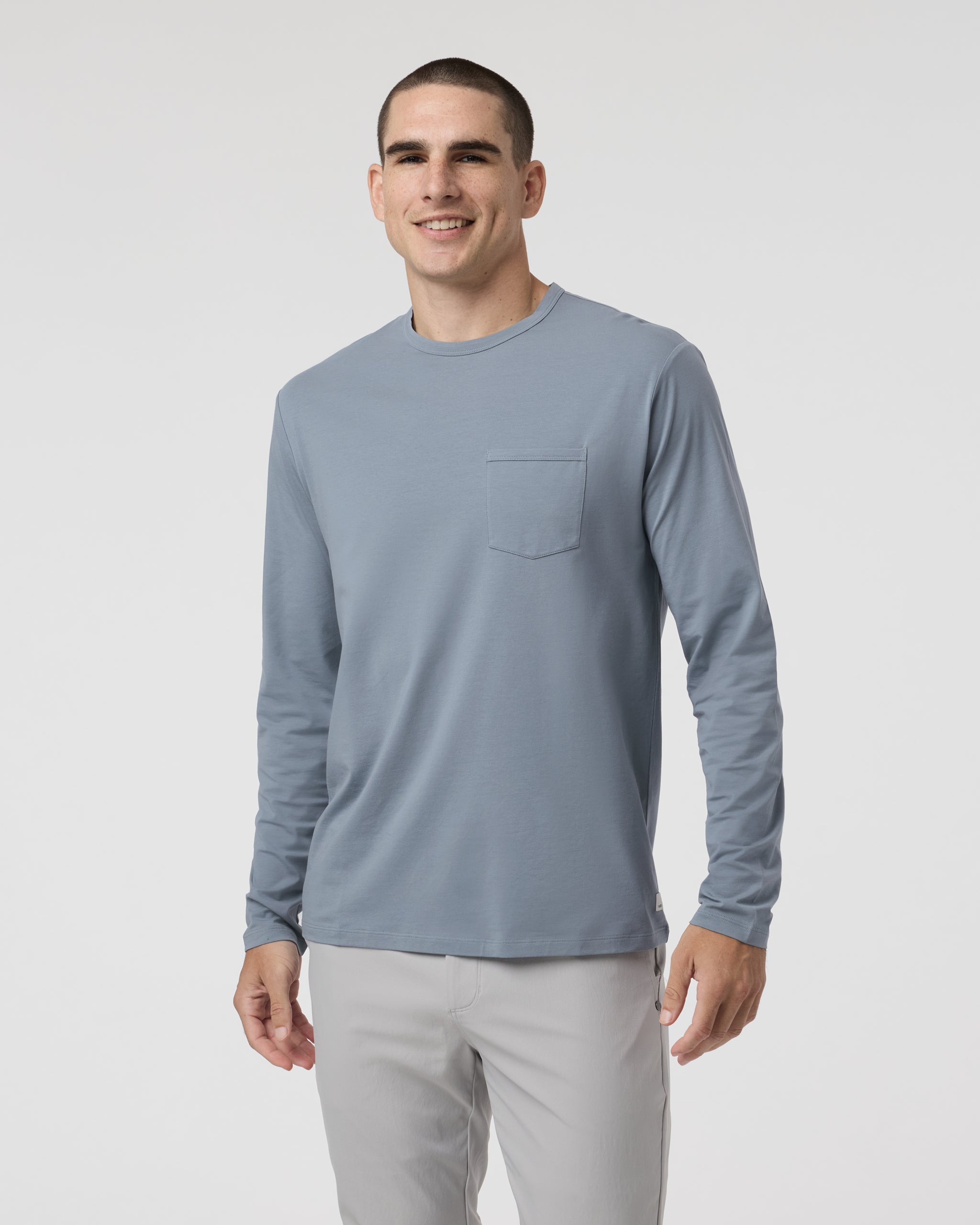 The lightest cotton you can imagine, now in a casual everyday long sleeve that doubles as your new favorite travel shirt. Feather-light performance stretch knit crafted with cotton combines in a soft, flattering fit and feel.