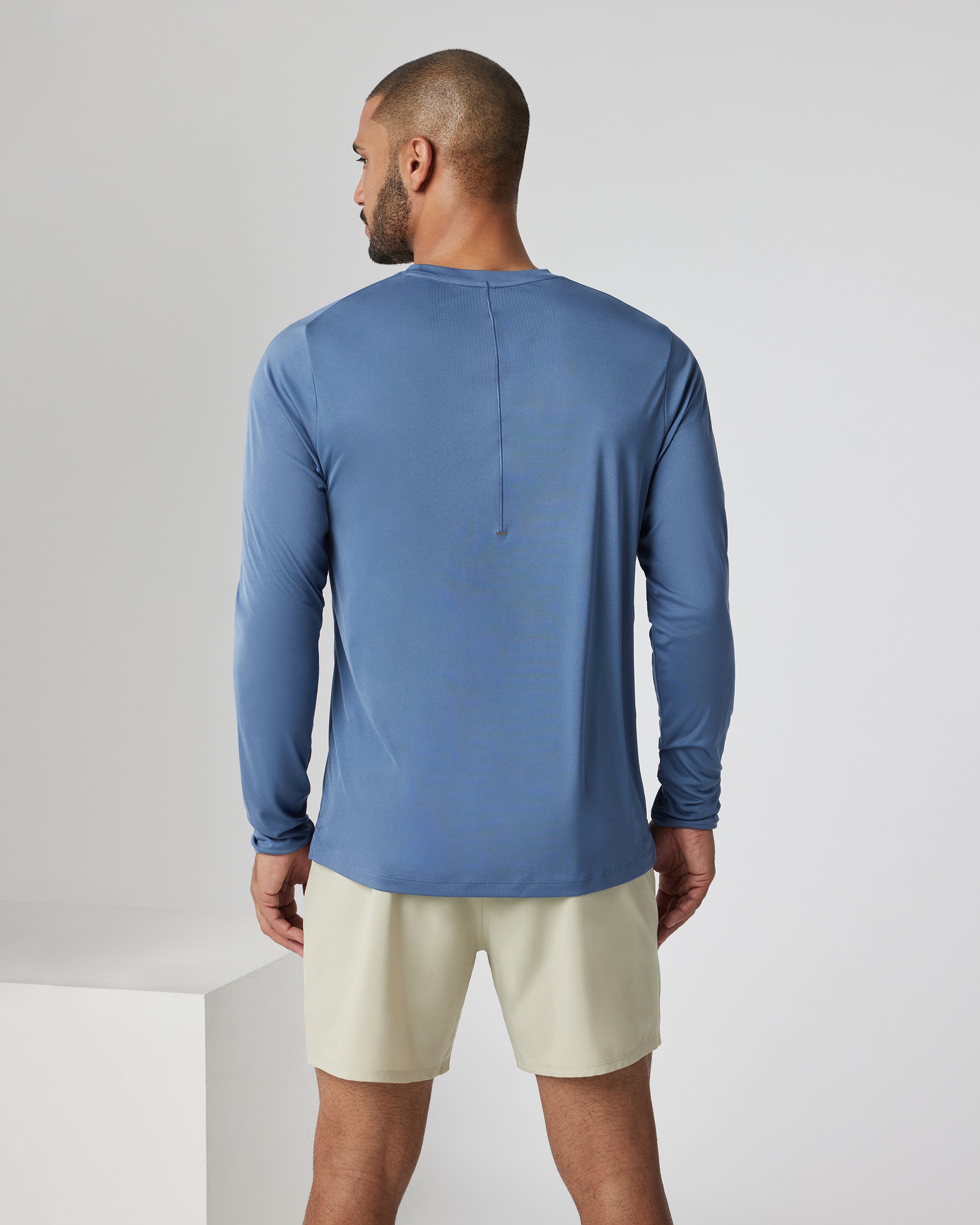 Hit your stride in our first-ever run tee, with anti-chafe seams, back perforations for extra breathability and a moisture-wicking, 4-way stretch knit. This long sleeve version is an essential lightweight layer for any run enthusiast.