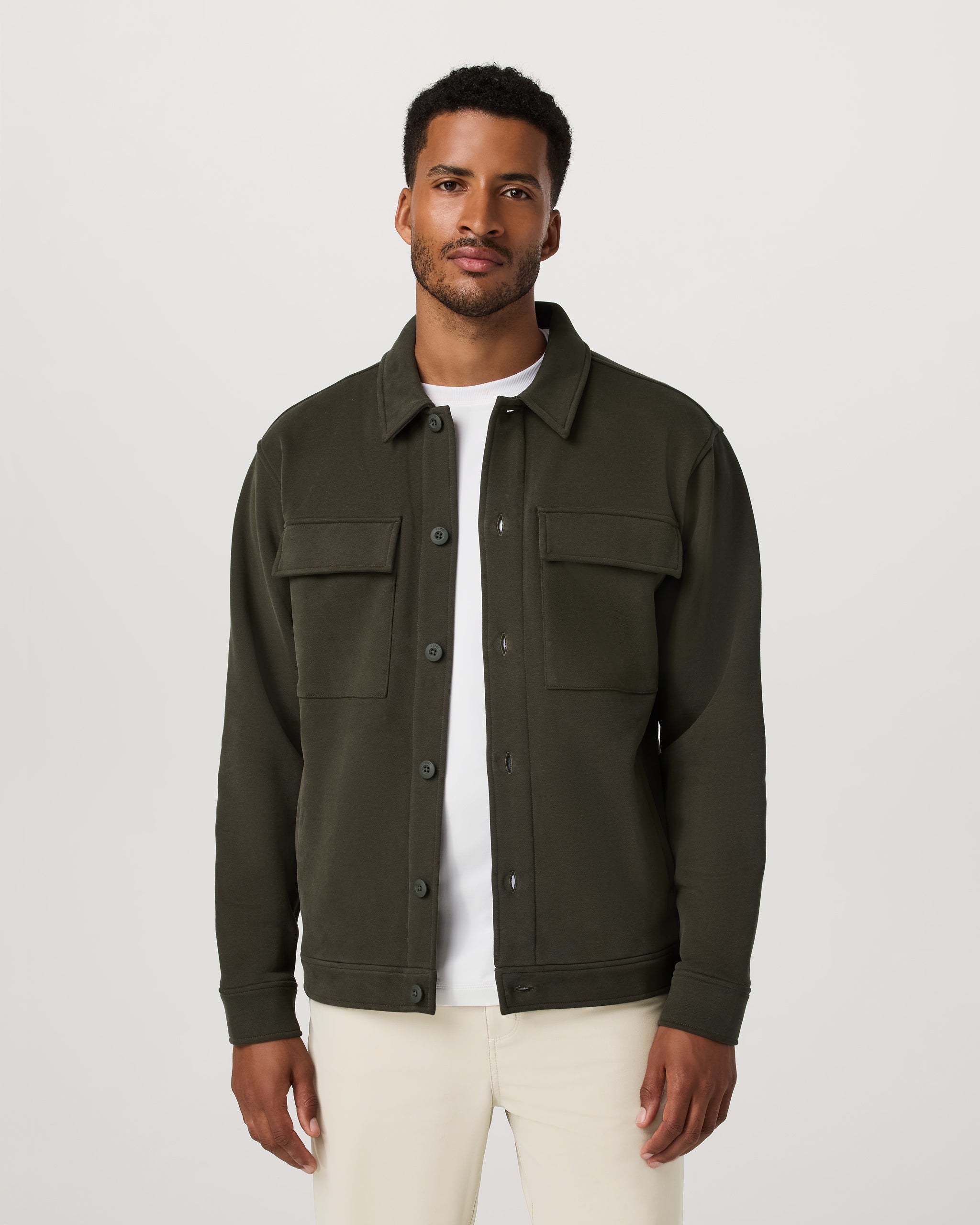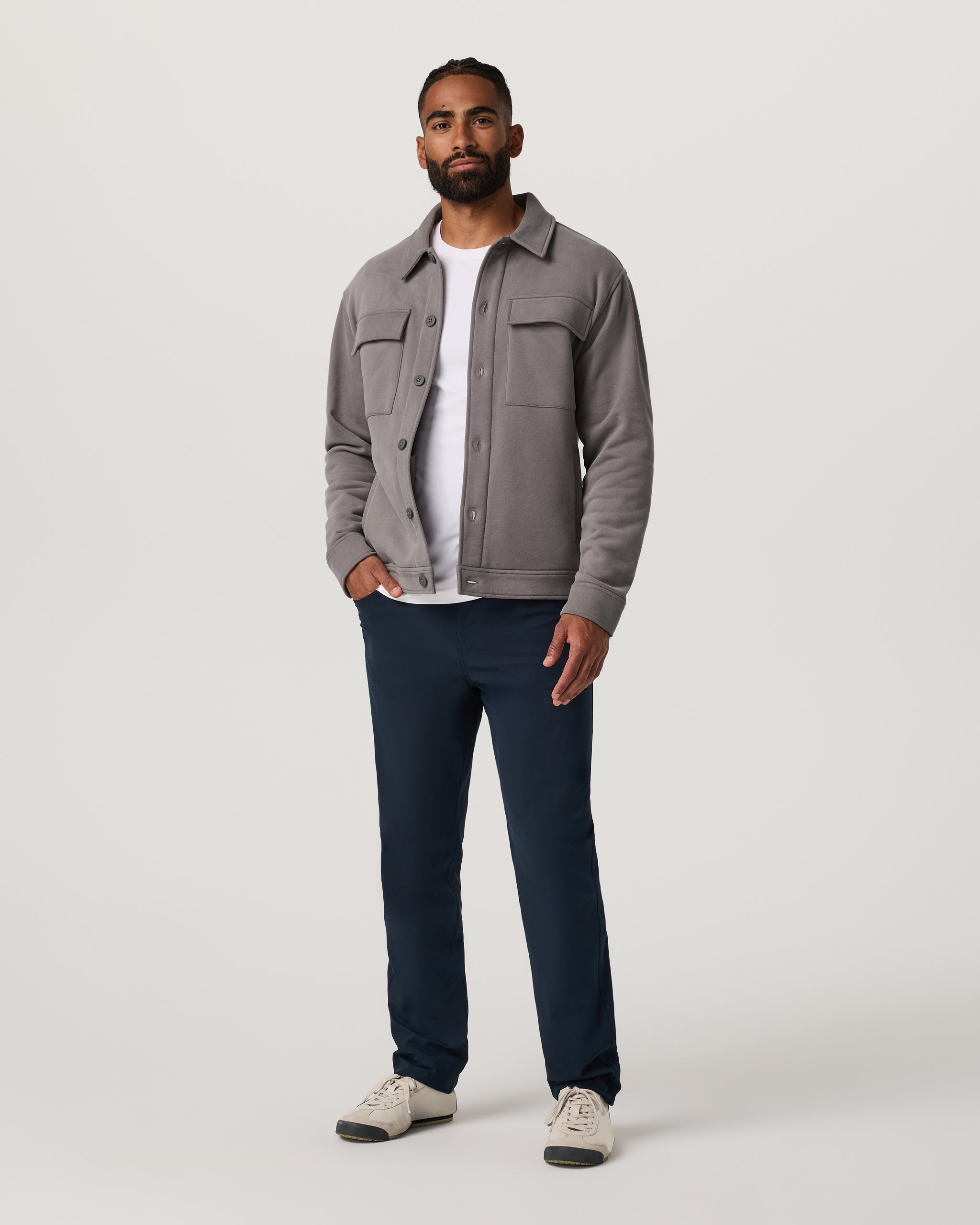 The Seaside Shirt Jacket is an ultra-cozy mid-layer made from plush 350 GSM brushed-back fleece crafted with 66% organic cotton. The ultimate in laid-back comfort, this men’s lifestyle layer features a button-front closure and dual utility pockets for everyday essentials.