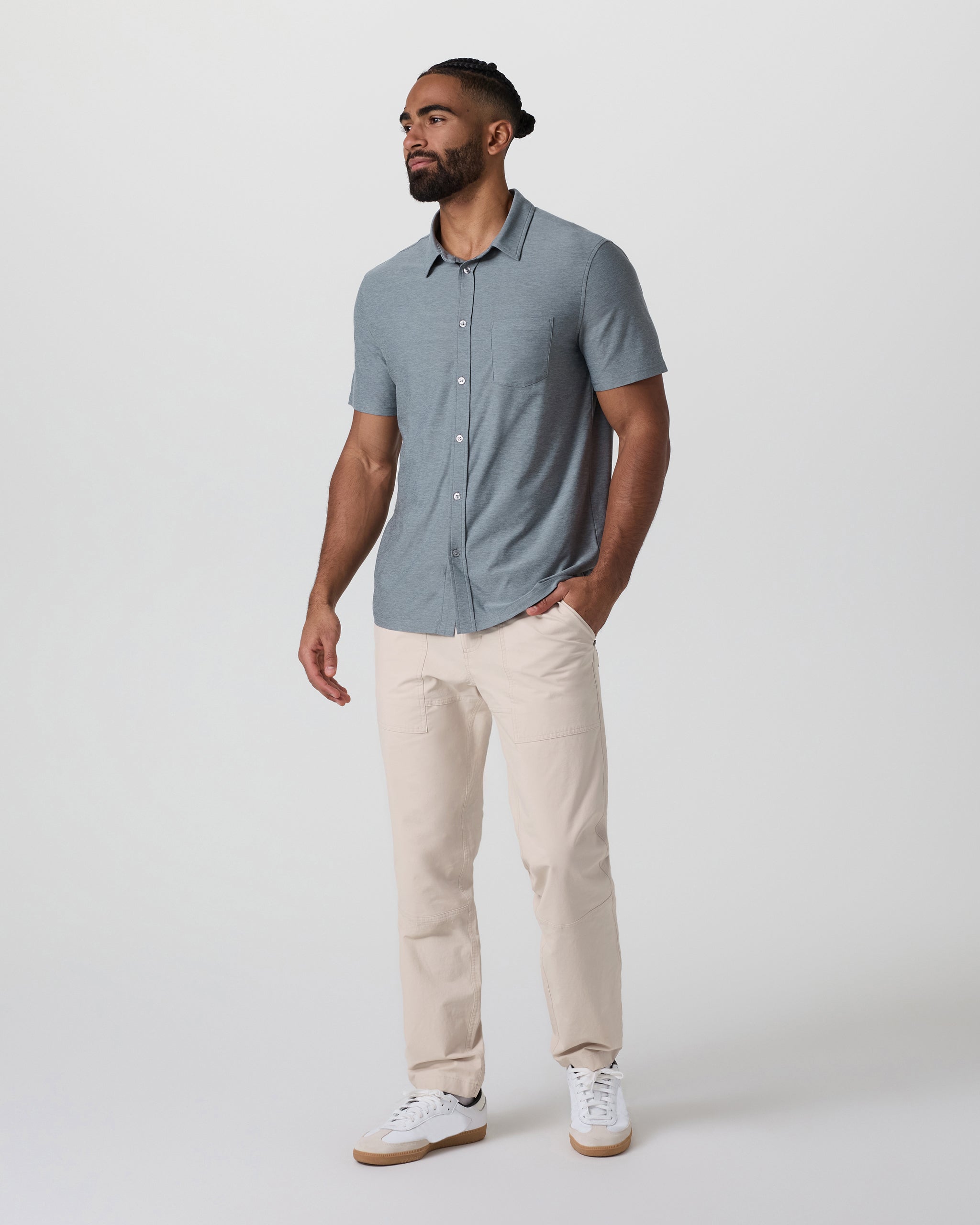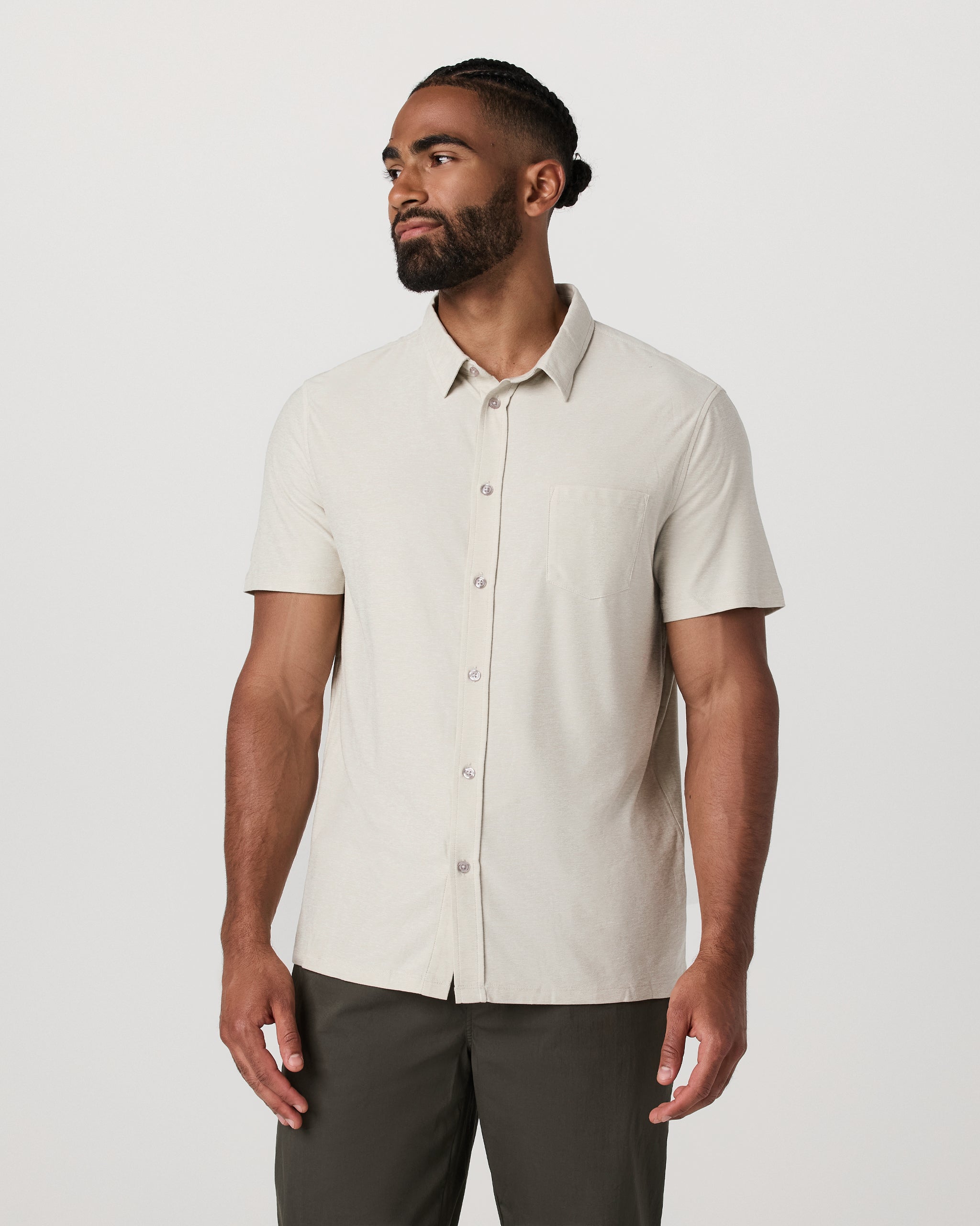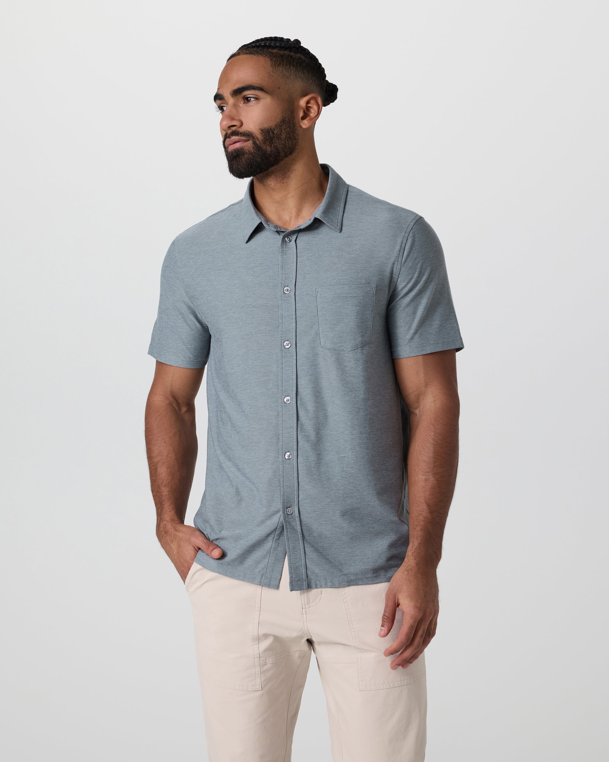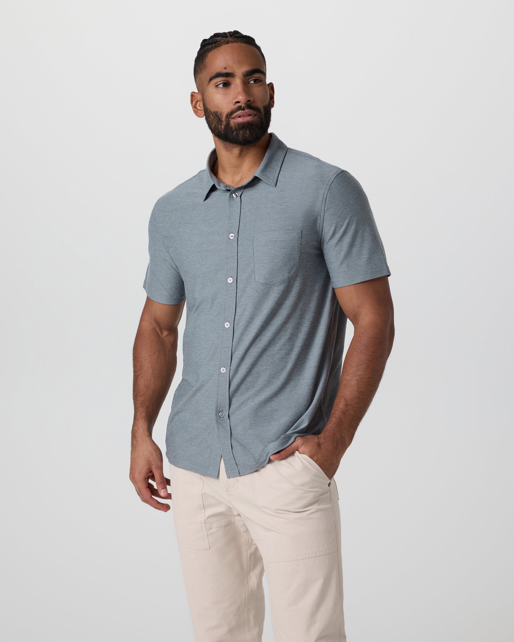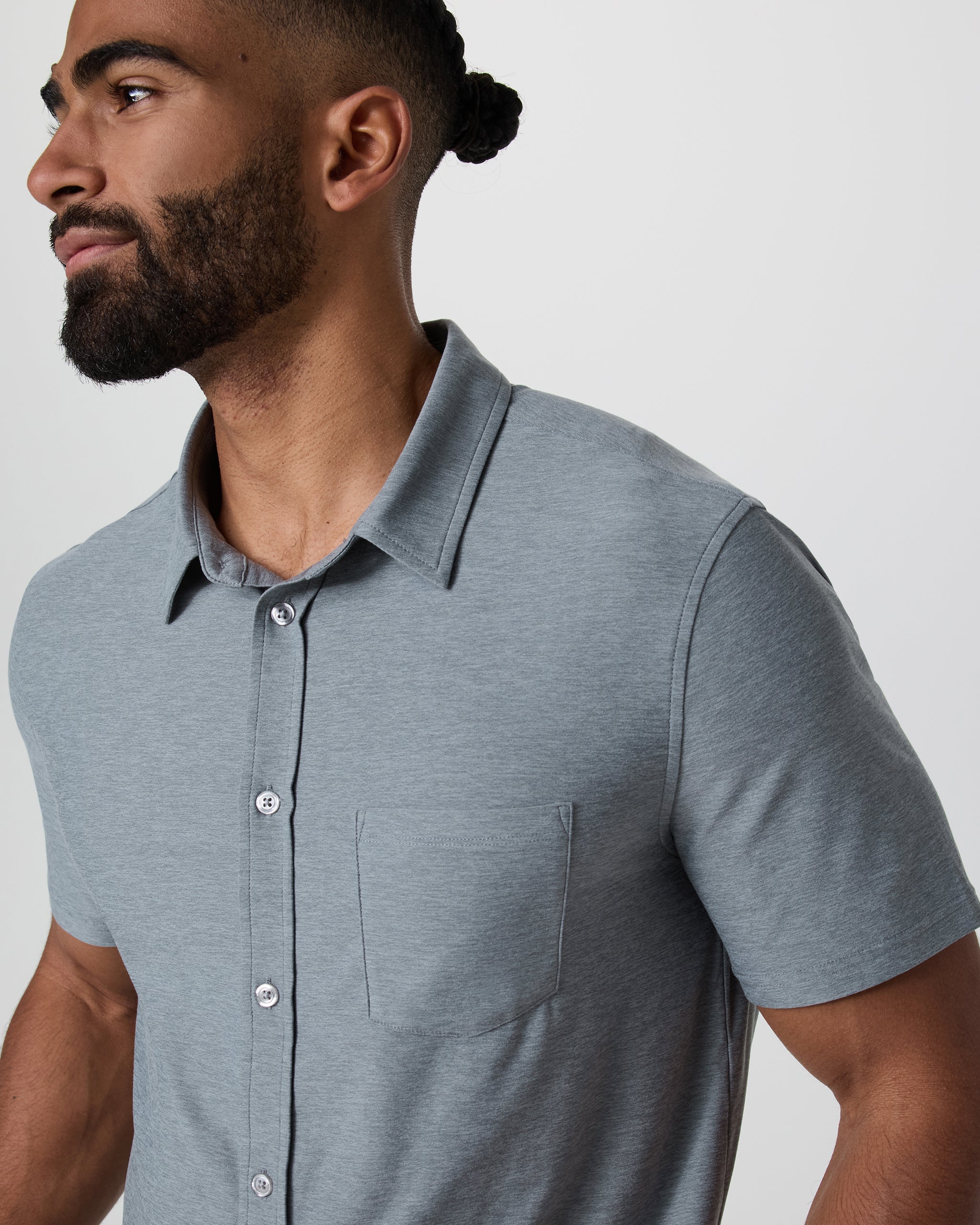 Our supremely soft Strato material takes on a new form with the Short-Sleeve Strato Button Down. Look clean, feel comfortable and stay fresh with moisture-wicking tech.