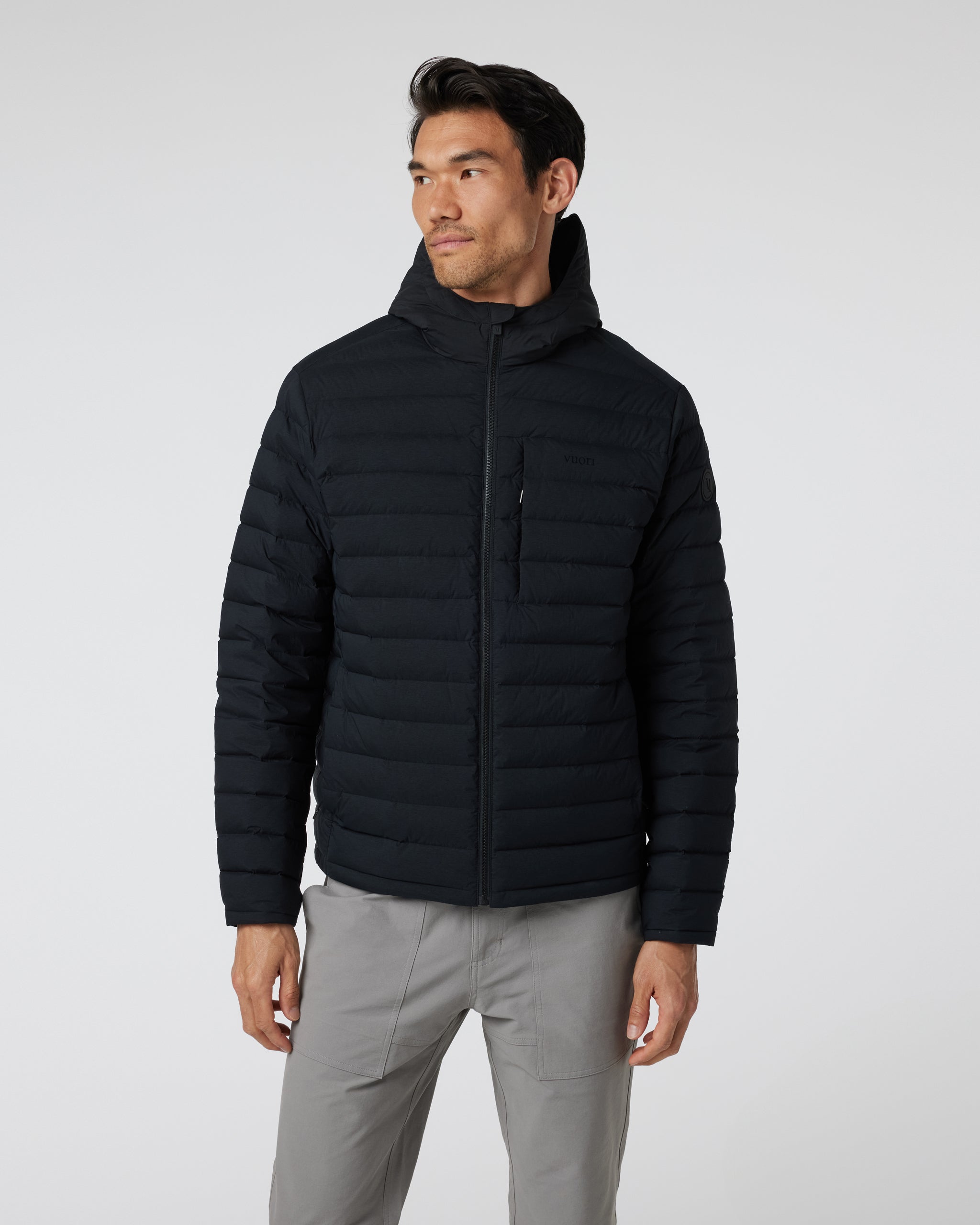 Ultra-versatile. This medium-weight jacket is perfect for outdoor adventures. It features Responsible Down Standard (RDS) insulation-filled channels for extra weather resistance and stretch for easy mobility. The hood and durable water-repellent fabric will help keep you dry.