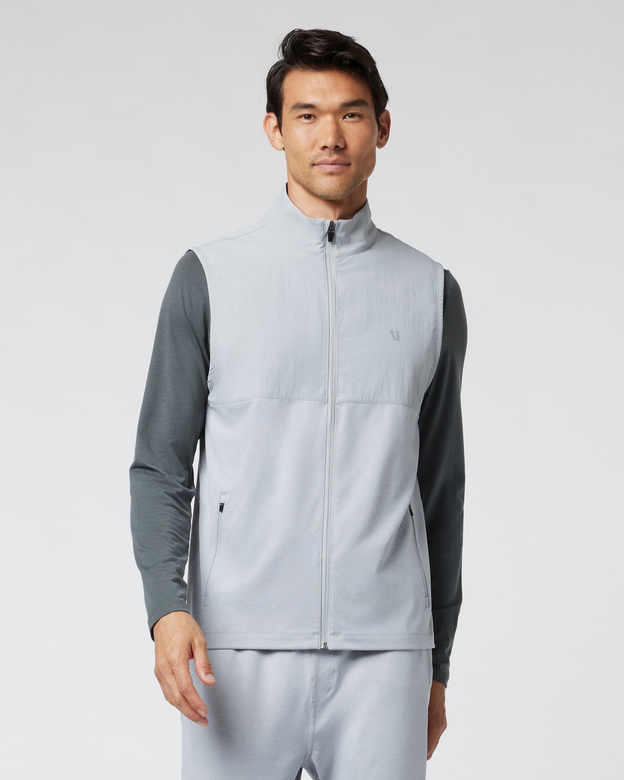 This full-zip vest is made with our 88% recycled Sunday Performance stretch fabric finished with a woven overlay for added protection from the elements. Moisture wicking and secure-zip hand pockets make this a winner for training and running.