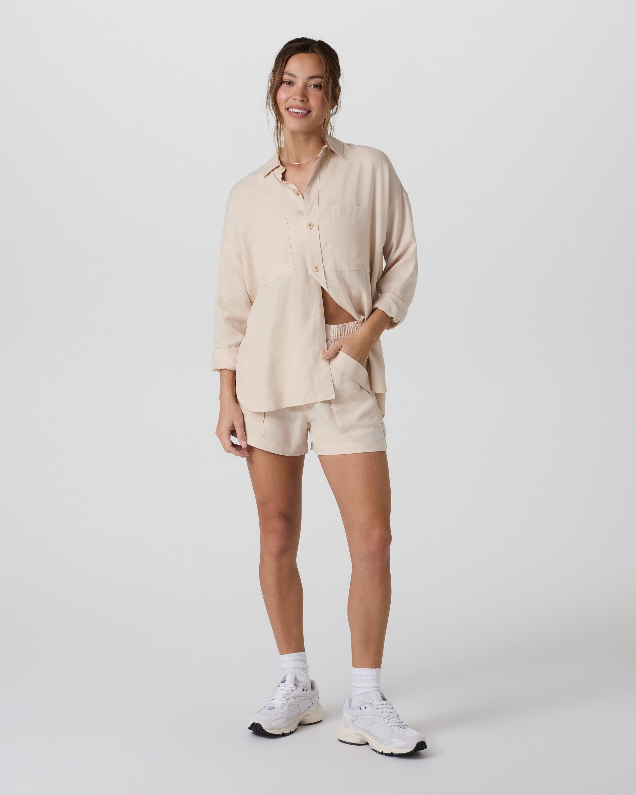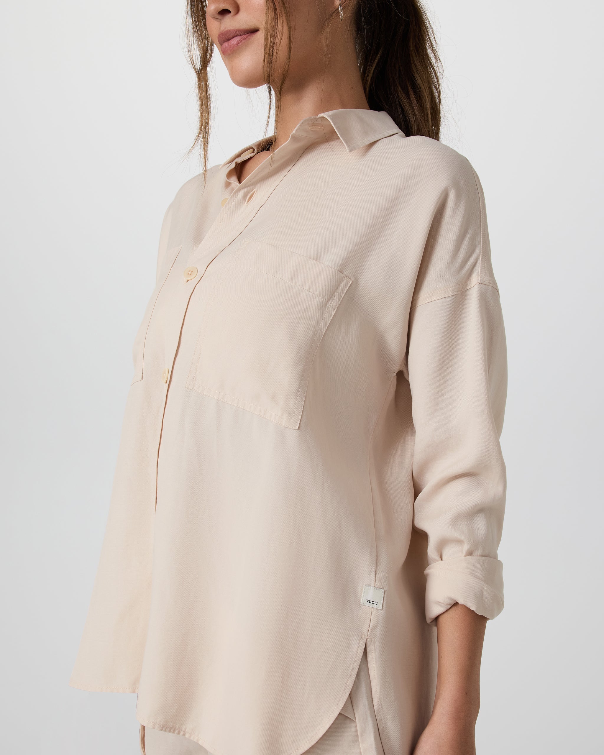 The Trestles Twill Button Up is a wear-anywhere layering piece made from gorgeous, drapey twill. It features an oversized fit we love to wear on its own or over our Vuori basics.