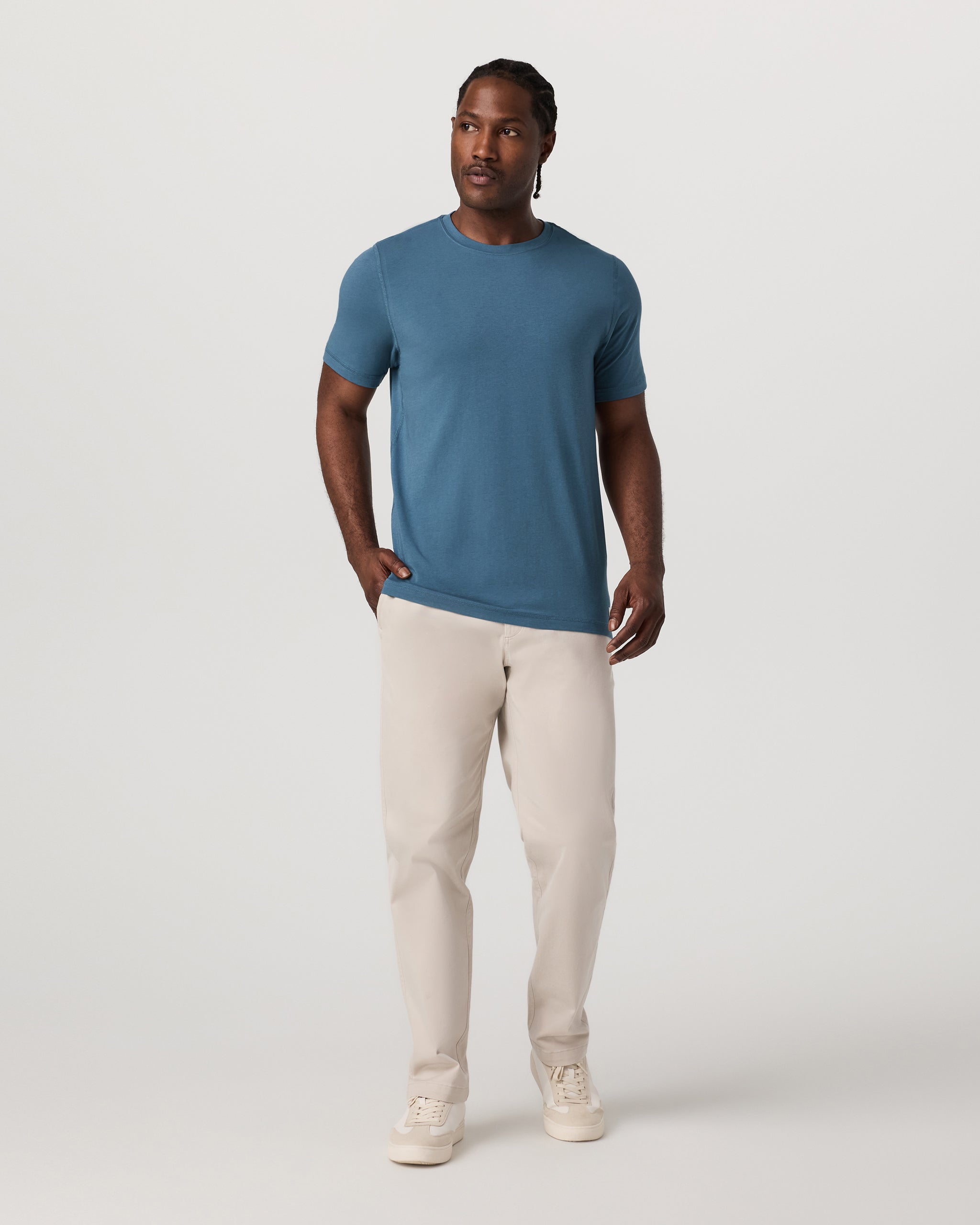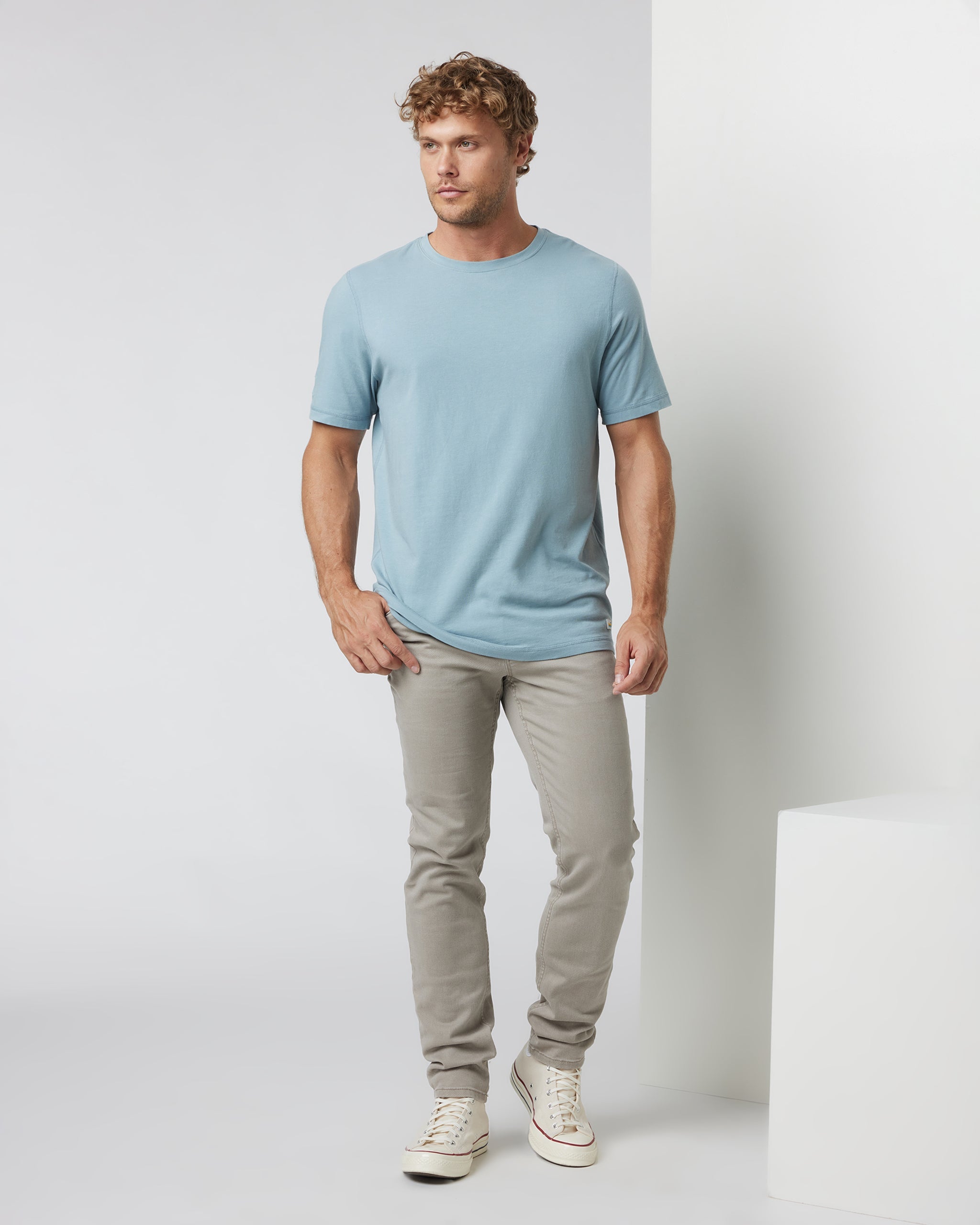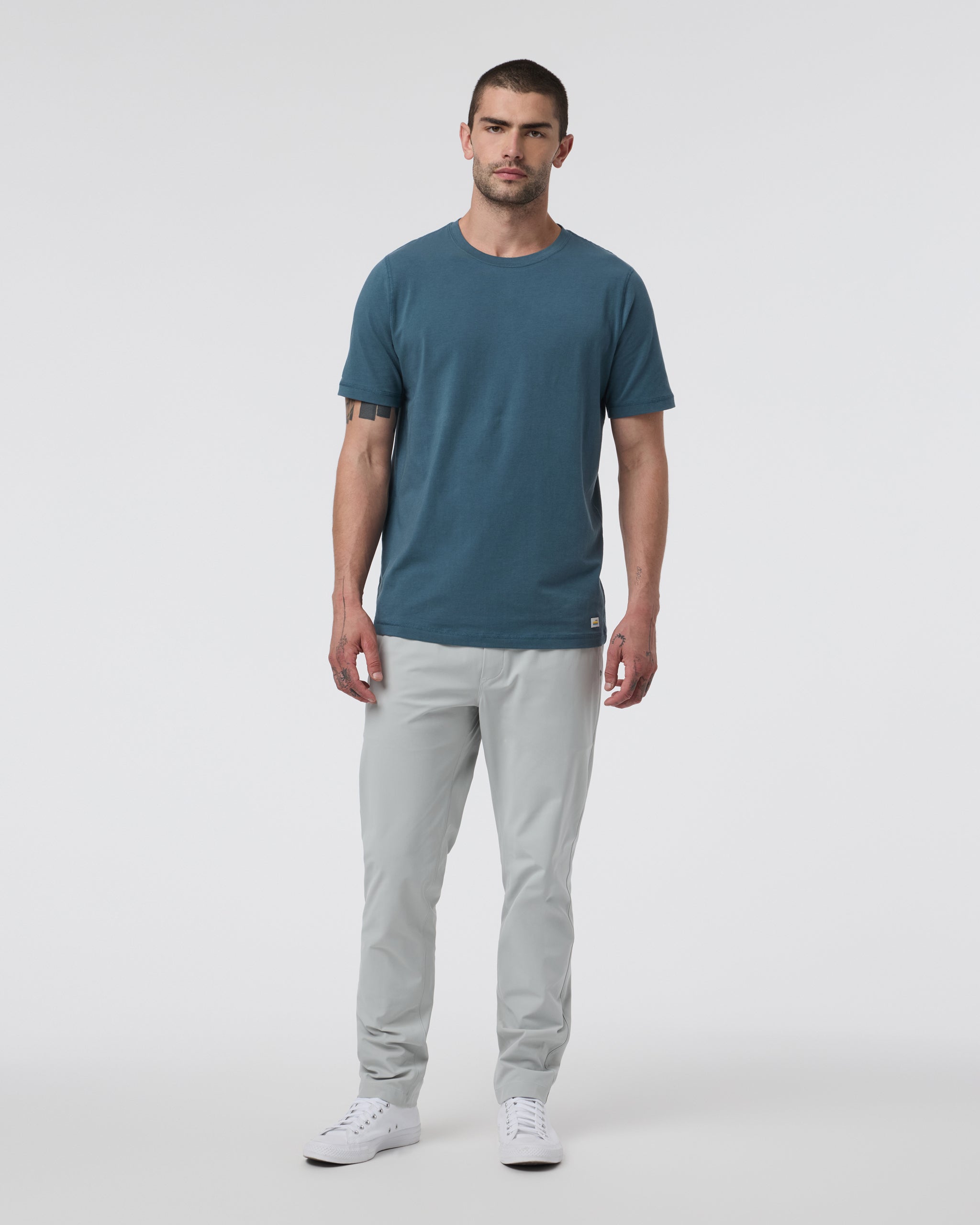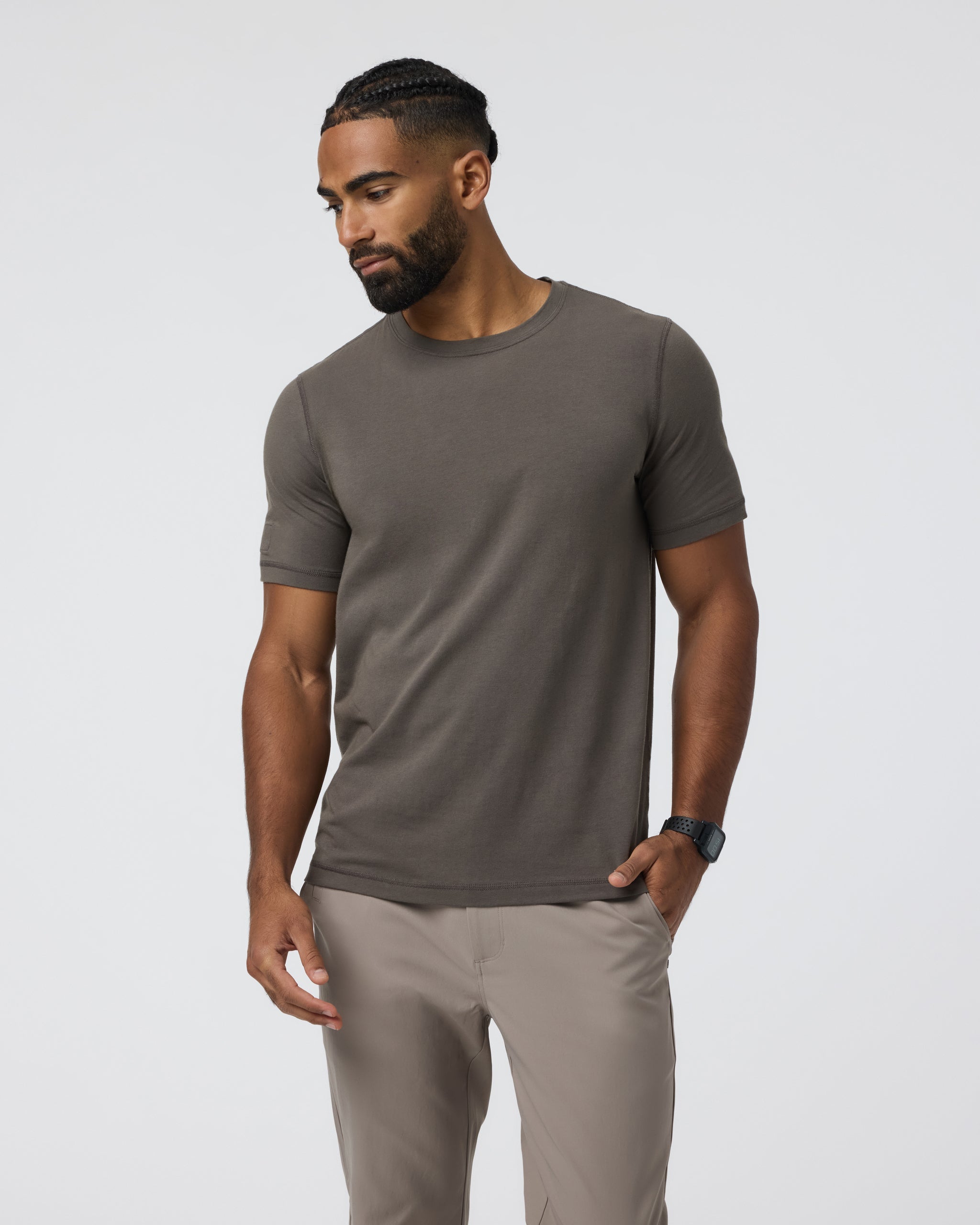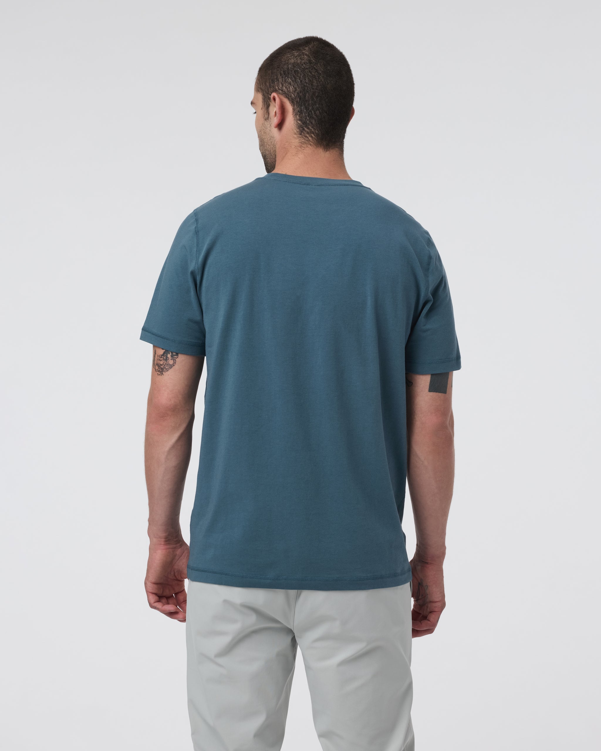 The Tuvalu Tee is an ultrasoft pima cotton t-shirt with plenty of stretch. Designed to move with you from training to travel, this short sleeve tee features flatlock seams for elevated comfort.