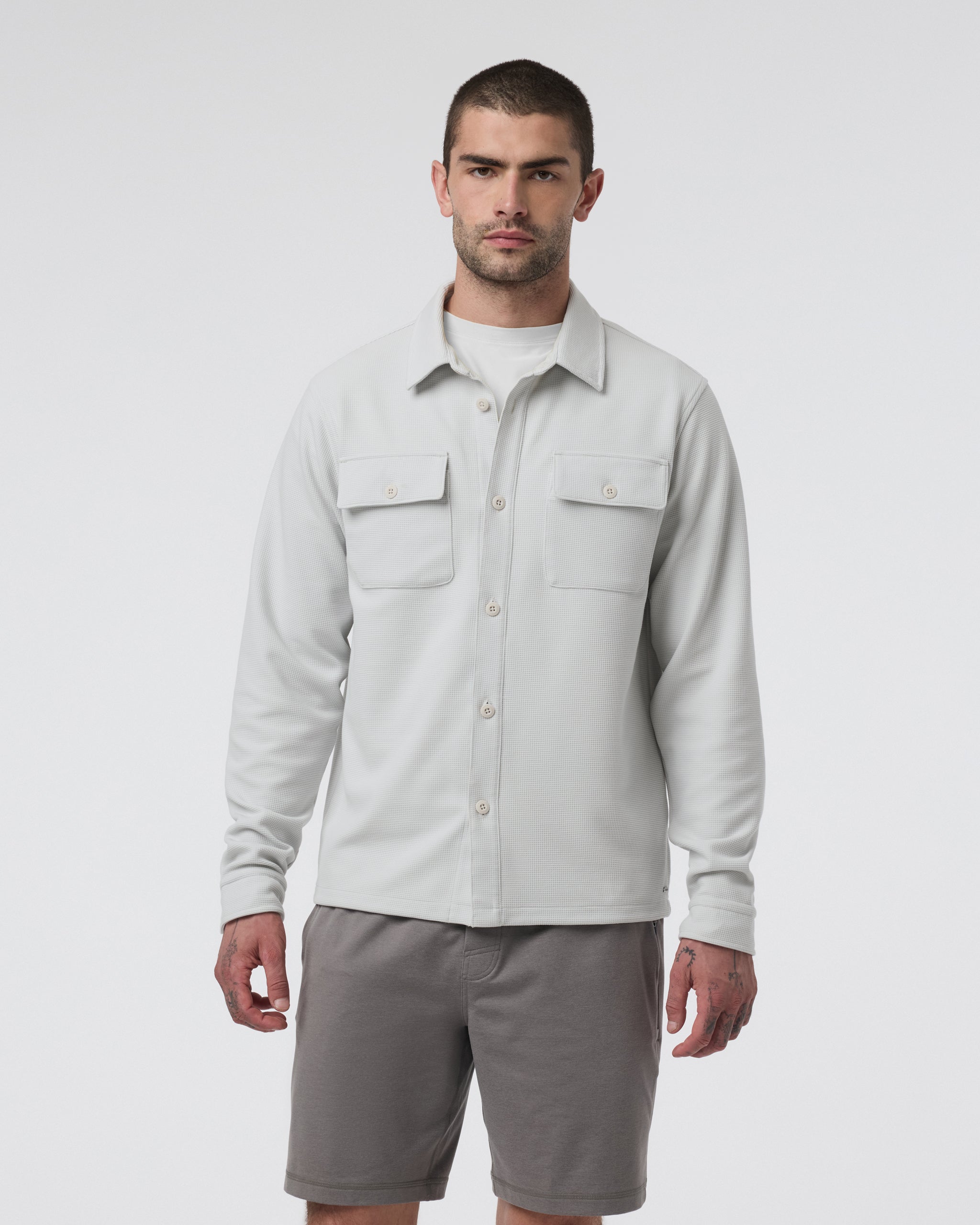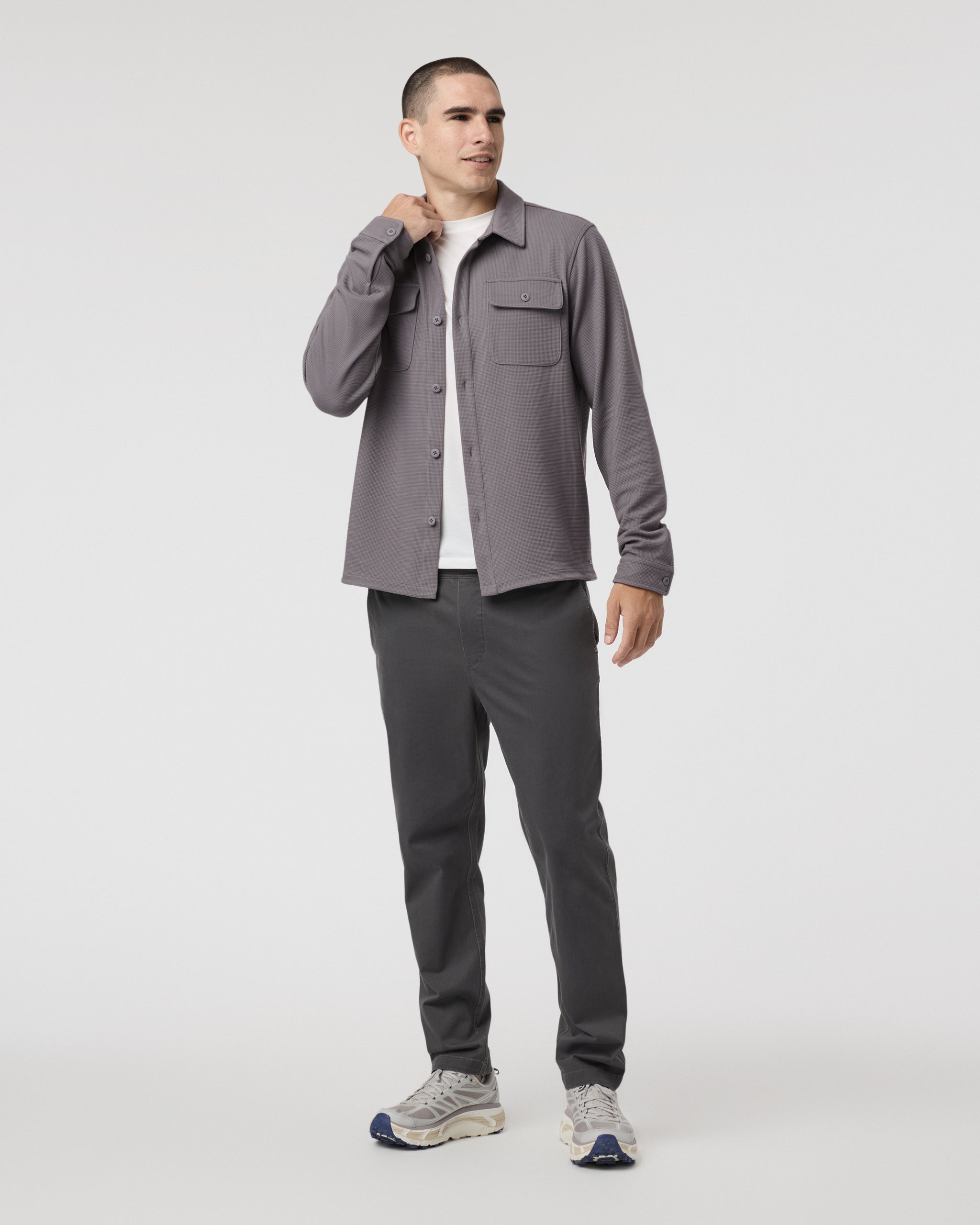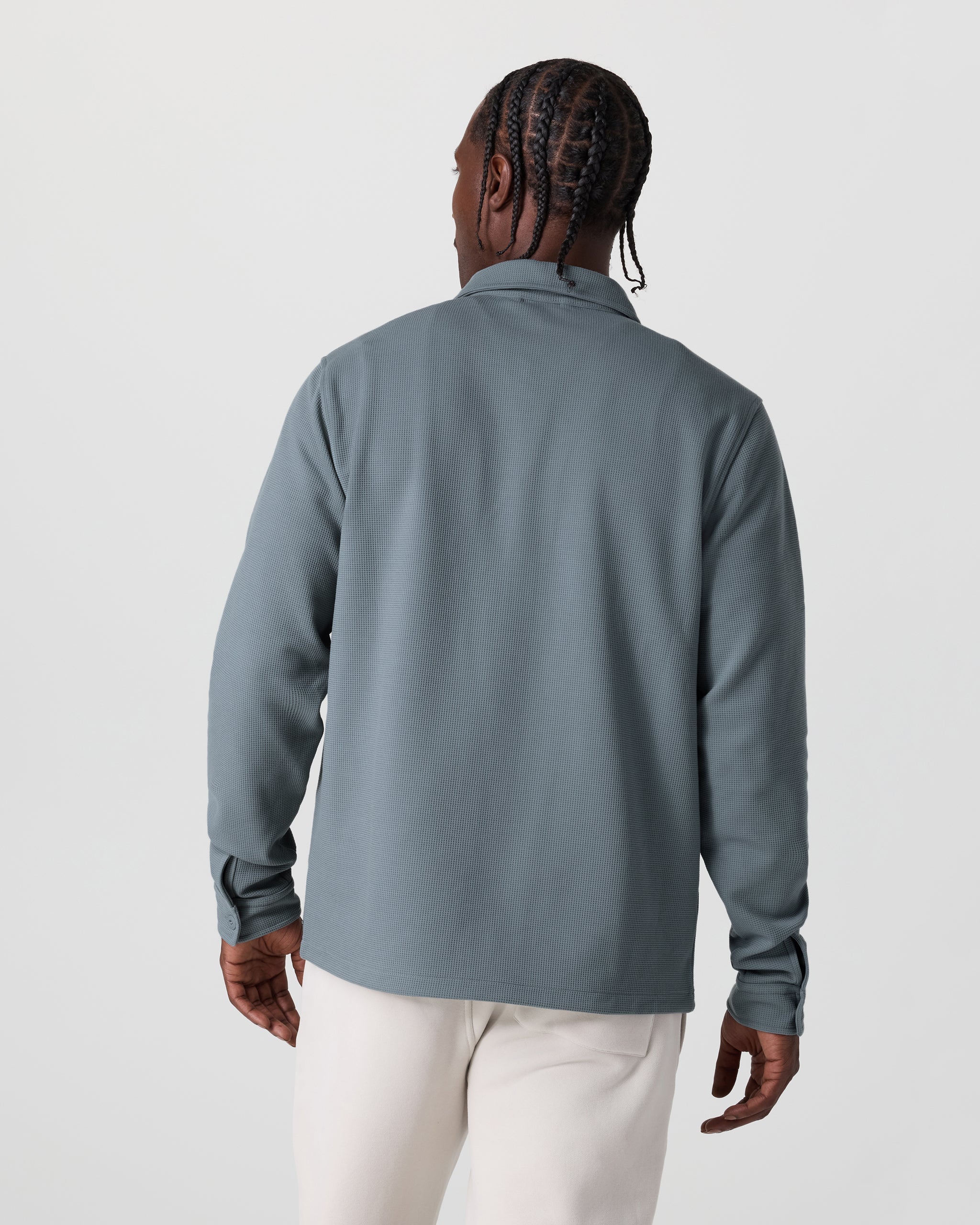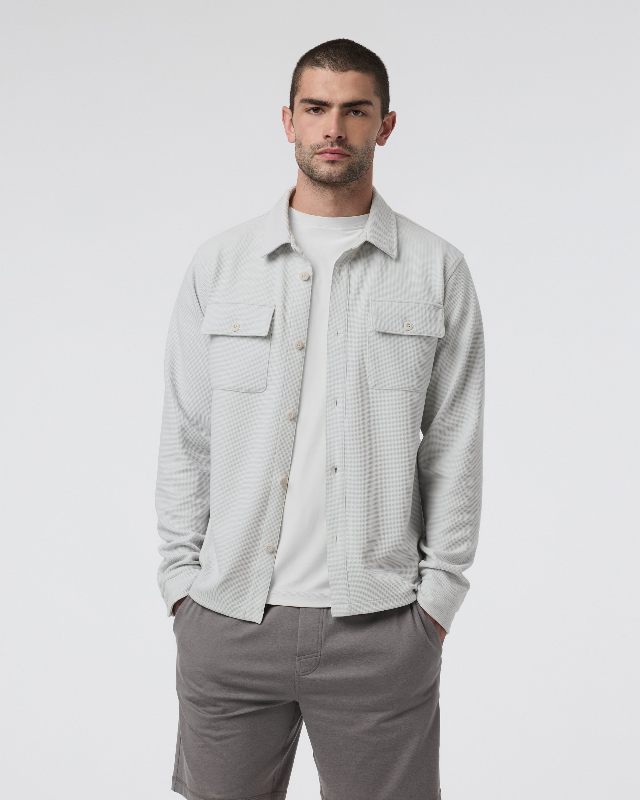 Part shirt, part jacket, all comfort. The Waffle Shirt Jacket is a versatile layering piece for year-round wear. It's crafted with a 4-way stretch knit from recycled materials that’s always cozy and equally breathable.