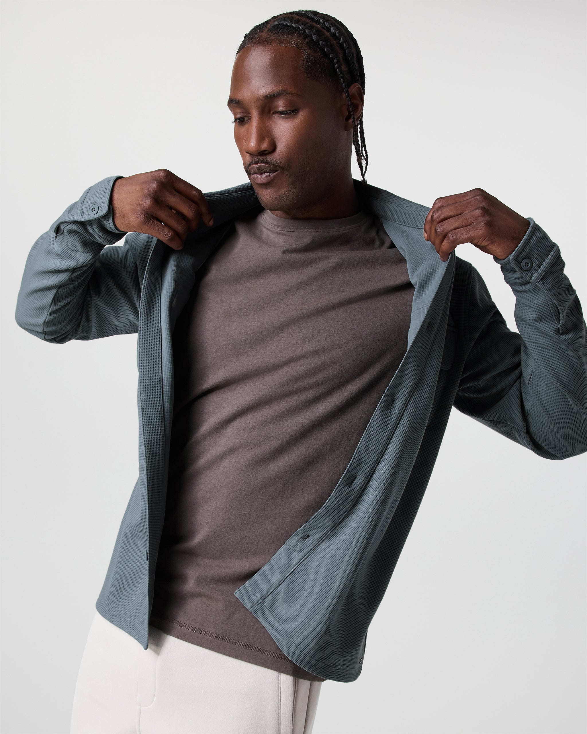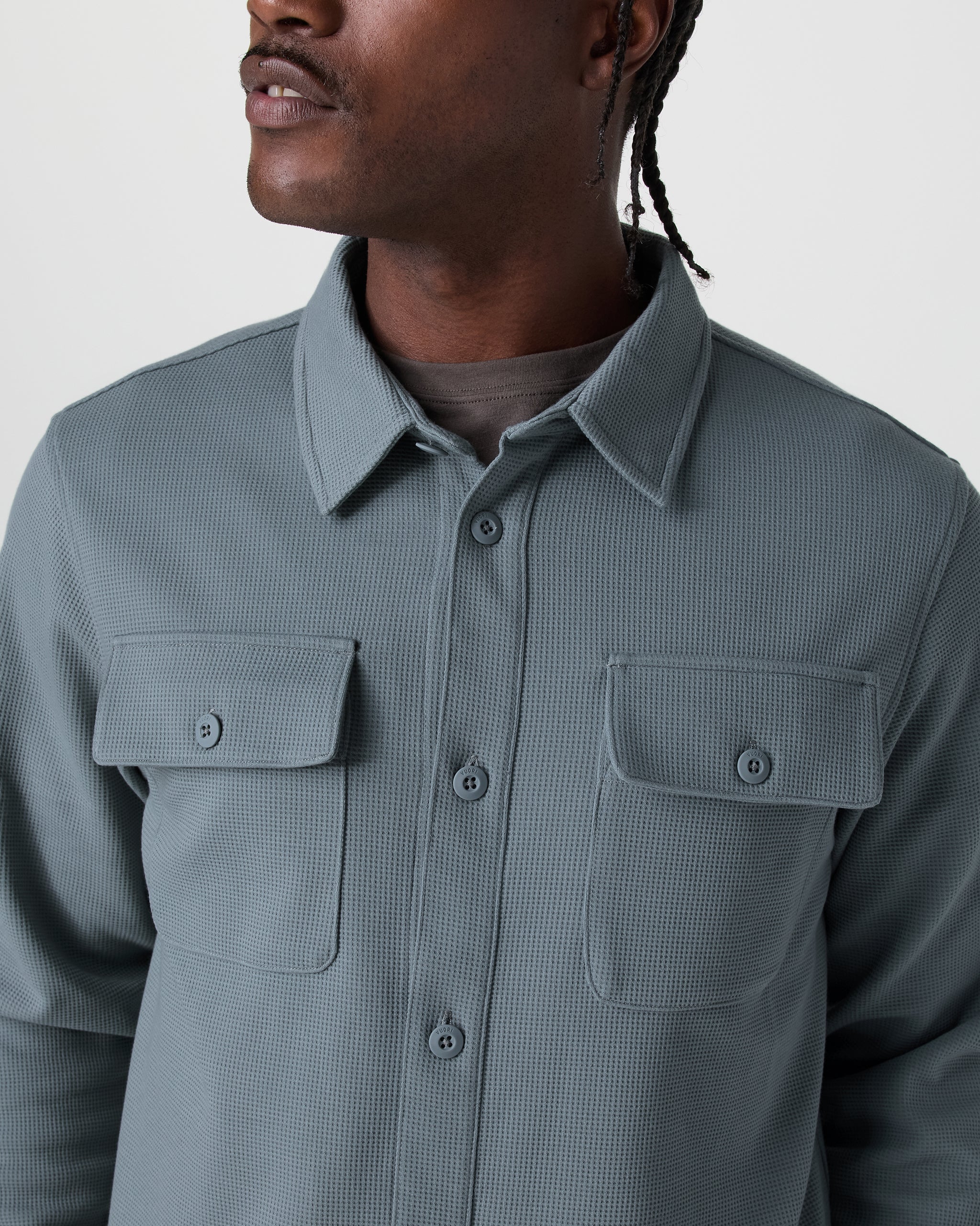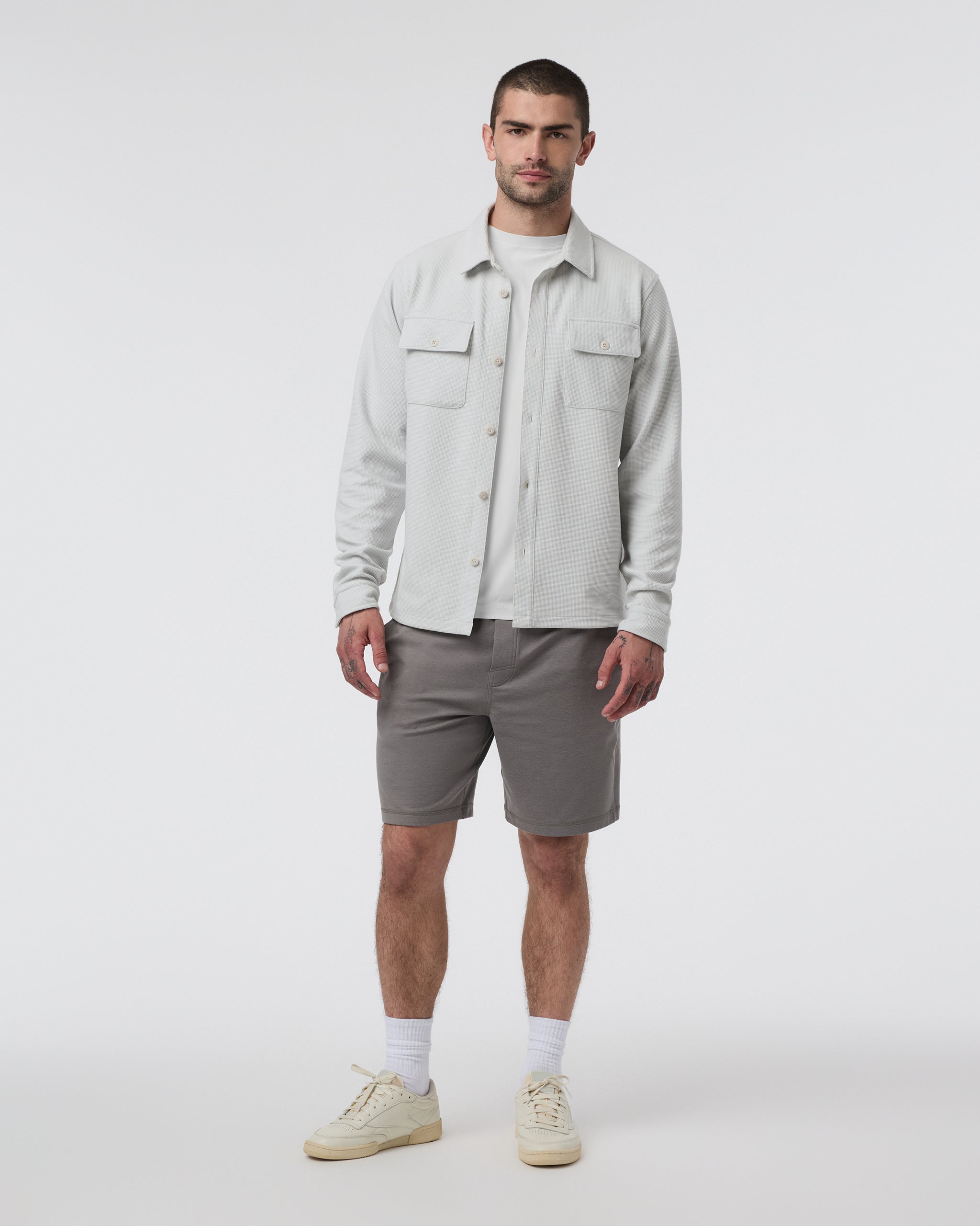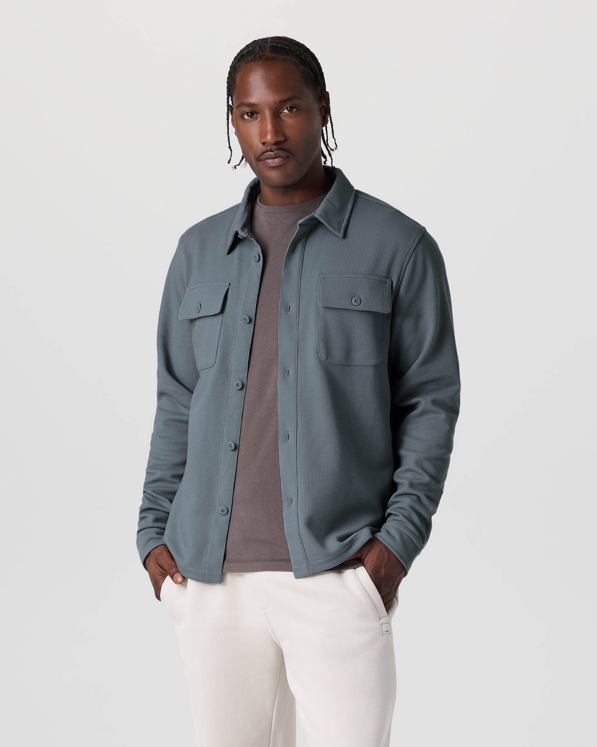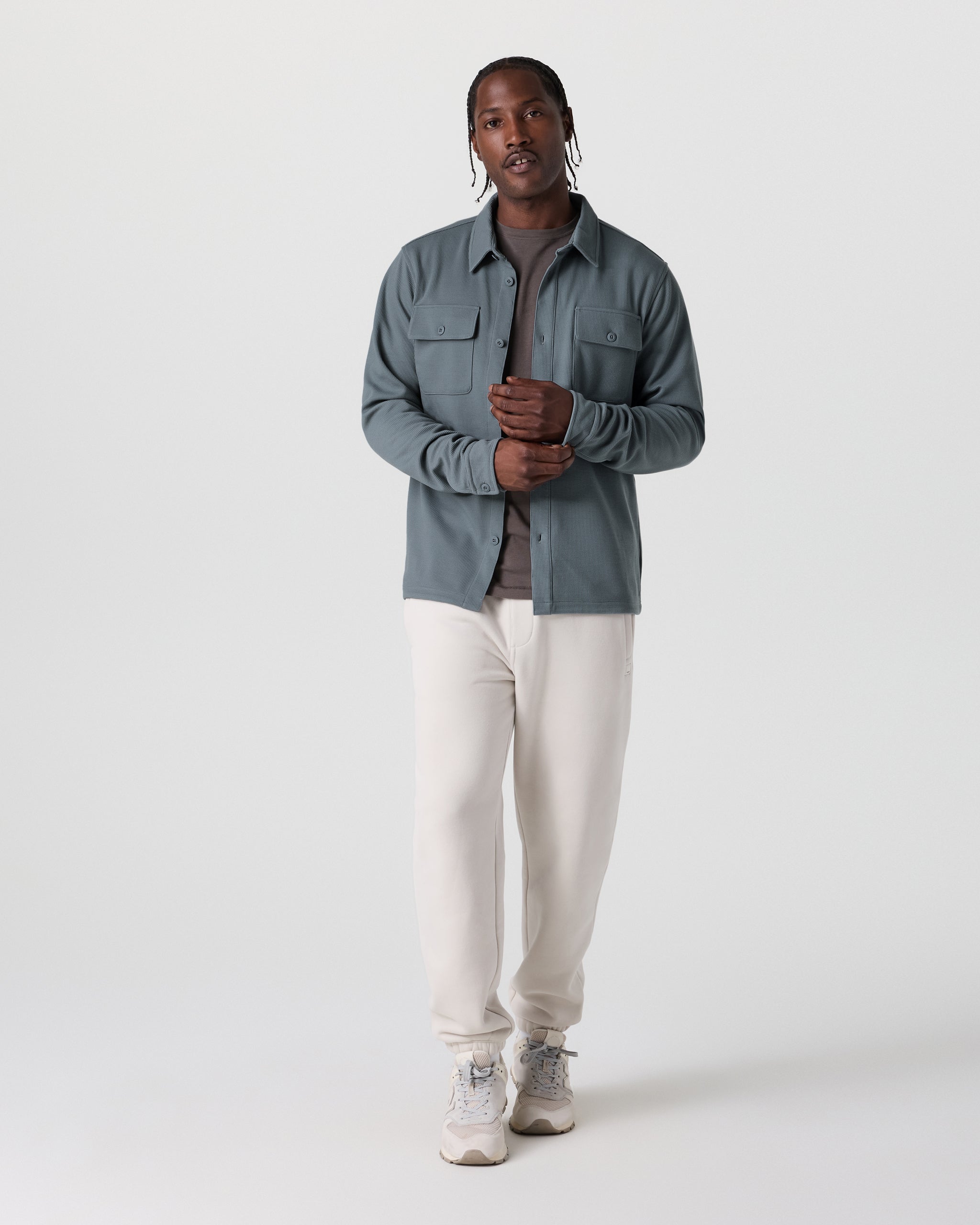 Part shirt, part jacket, all comfort. The Waffle Shirt Jacket is a versatile layering piece for year-round wear. It's crafted with a 4-way stretch knit from recycled materials that’s always cozy and equally breathable.