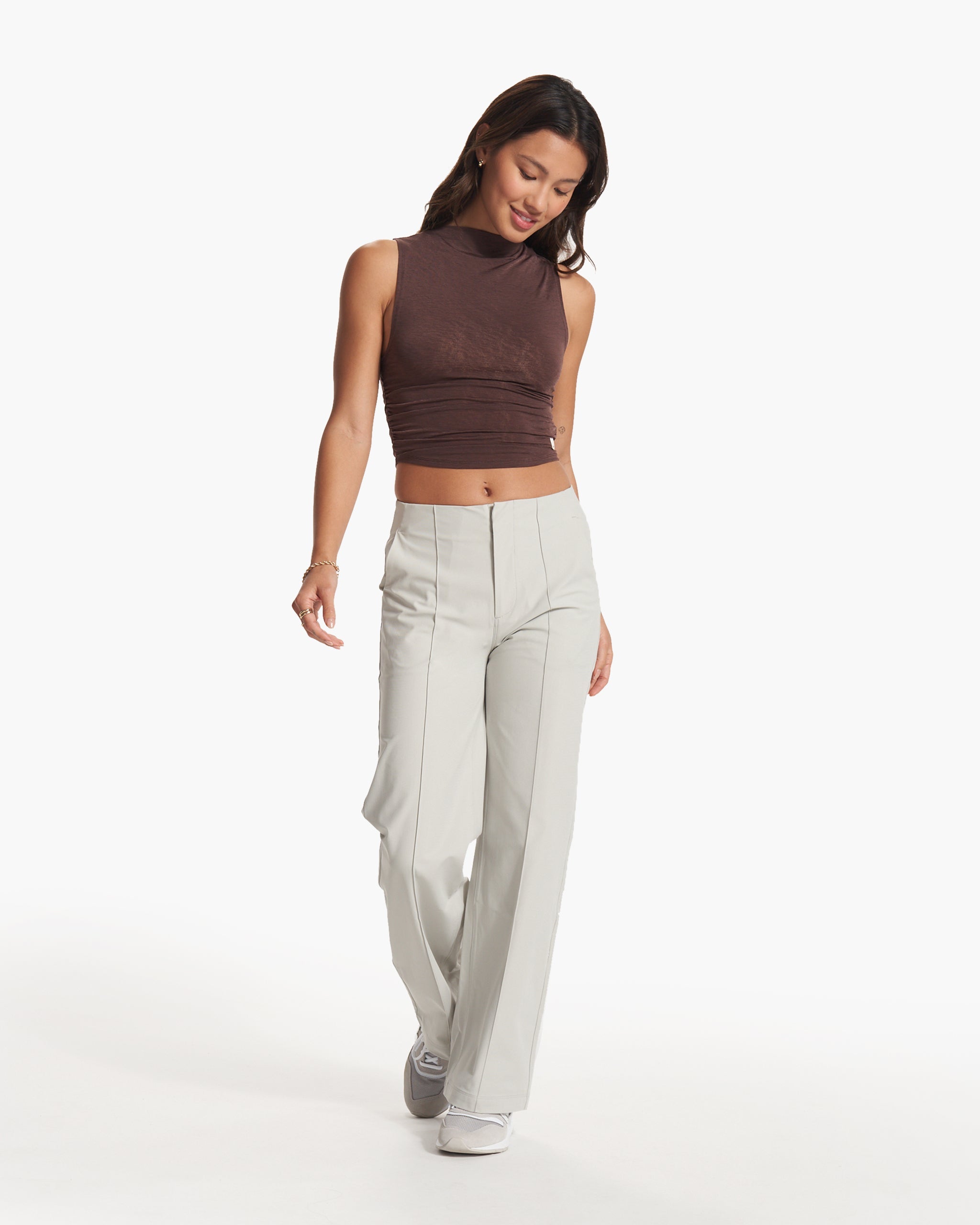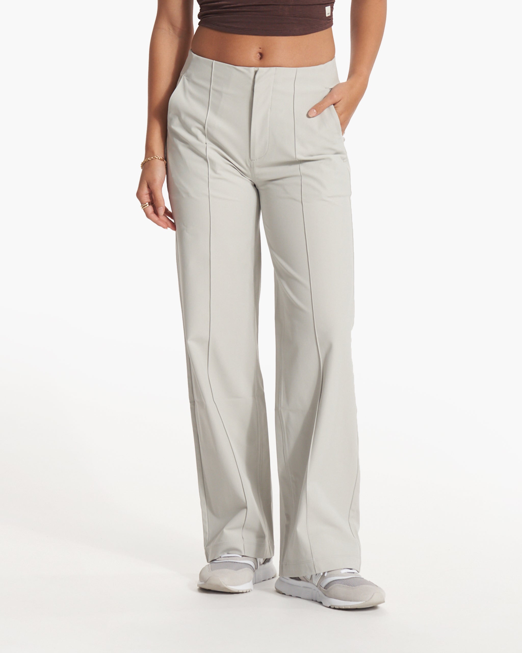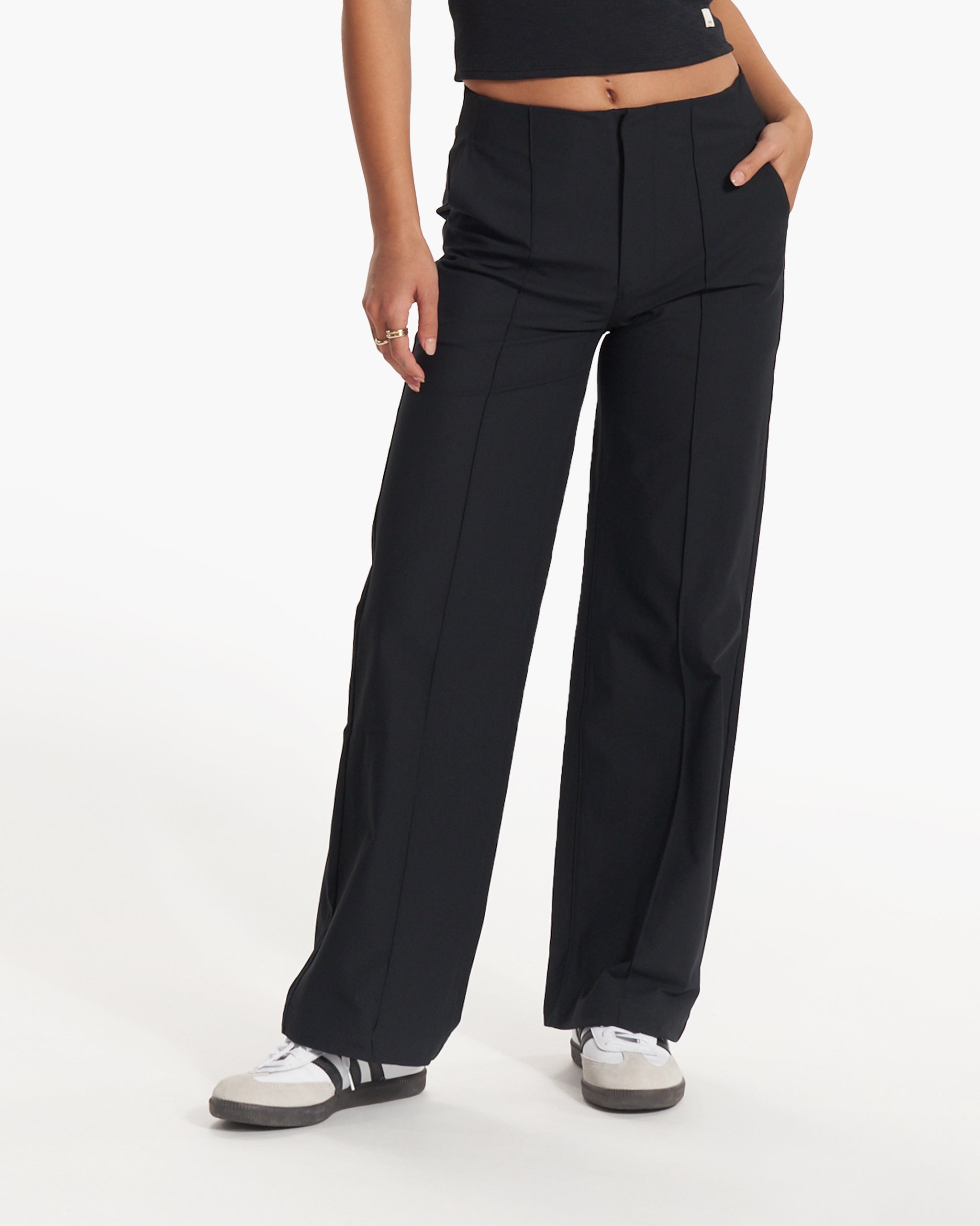 Meet Meta: a collection designed for a life of movement. The Women's Meta Wideleg is an ultra-flattering tailored pant with front pintuck details and our performance stretch knit. This version has a slightly longer inseam.